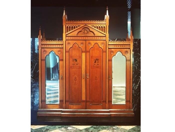 I’d seen this building before but never knew where it was – now I know it was in Elizabeth Street between Lonsdale and Little Bourke, and that it burned down in a great fire in 1907. It was built as Wallach’s Furniture Emporium in 1887, the business having just been take over by Benjamin Fink, who went on to build a lot more (like this designed by #TwentymanAndAskew – Finks building, which burned 1897, and the Block Arcade, replacing George’s, which had burnt out …hmmm). Anyway it was one of the first big buildings to have a new tangled Otis #hydrauliclift ‘tastefully designed and fitted out’. Unlike Finks building, the ruined building was demolished and replaced by a similar height Edwardian on the left half, and a 30s thing on the right, both dem mid 70s for Myer House. Fire images via Melb Through the Ages FB. And the Powerhouse in Sydney has a set of Wallach’s Gothic bedroom furniture 1888.