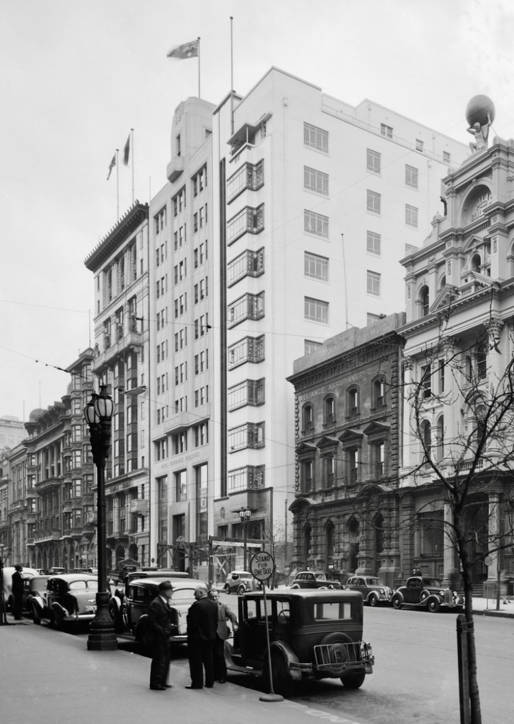 Note I didn’t photograph the old entry door that’s now plastered with Taco Bell signs. Nice shots showing it in 1971 and also 1941 from @library_vic. Only thing original in the lobby is the stair, pic by Graeme Butler. Hmm second thoughts might not original since the original door must have has steps up to the mezzanine, or went through at ground level to the lift lobby.