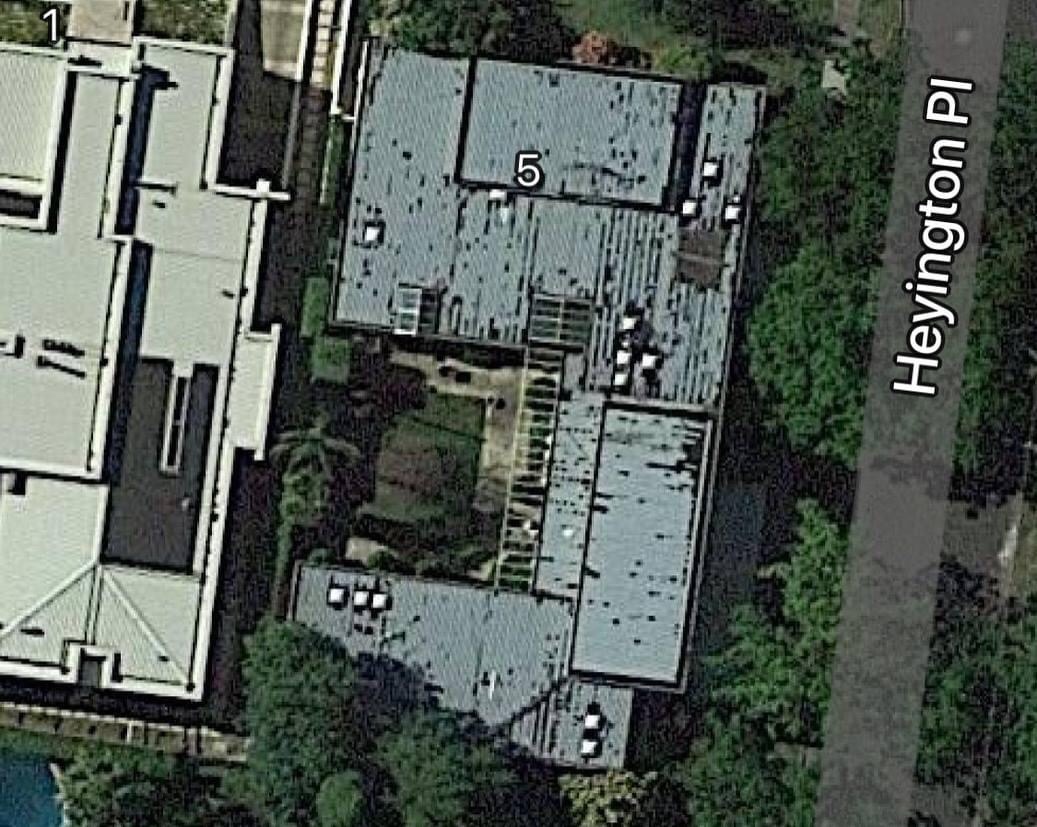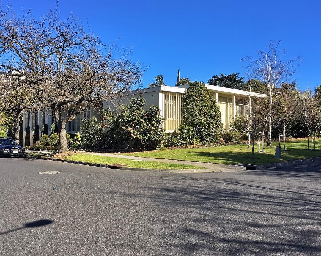 Naliandrah, Glendye Court, Toorak, one the many fabbo houses by Polish -born husband and wife team #HolgarandHolgar, this one from 1967, for Alan and Ada Selwyn, and perhaps their first big lush Toorak house. This one could be a contemporary design, with a patterned screen and a pointy curved wing to one side – which you can see in the model ! Made for an exhibition in 1989 and held by #MuseumsVictoria, also in the satellite image.