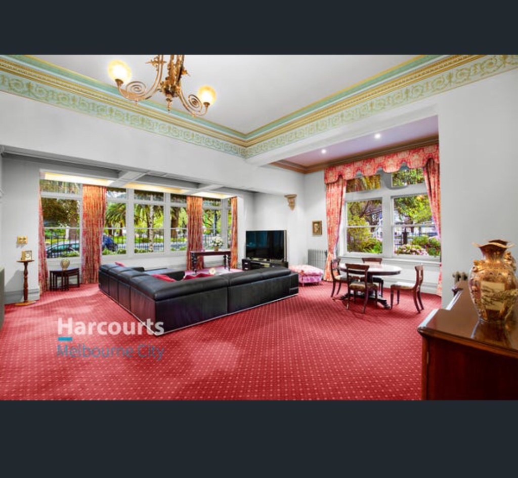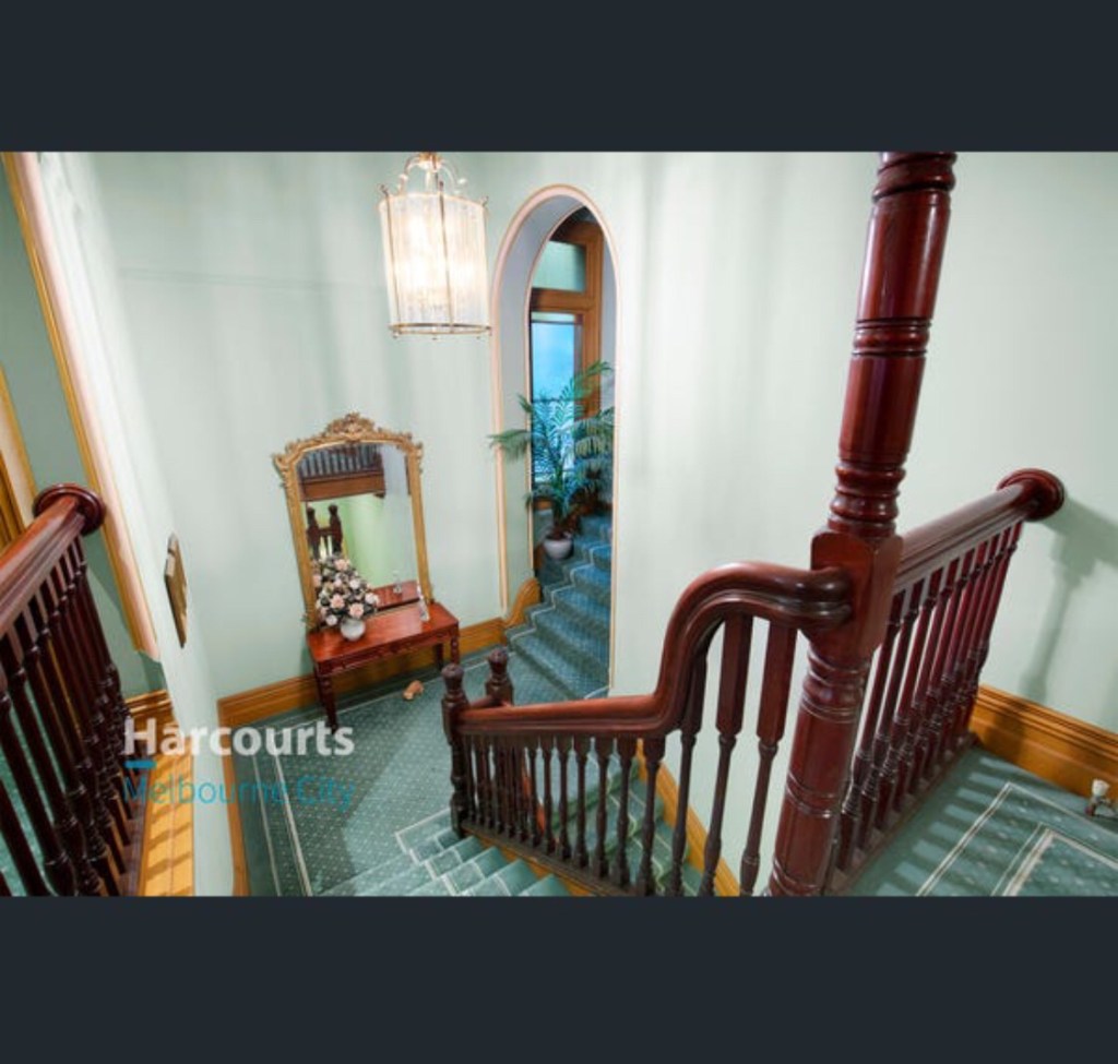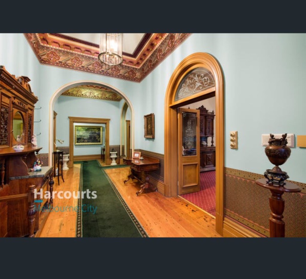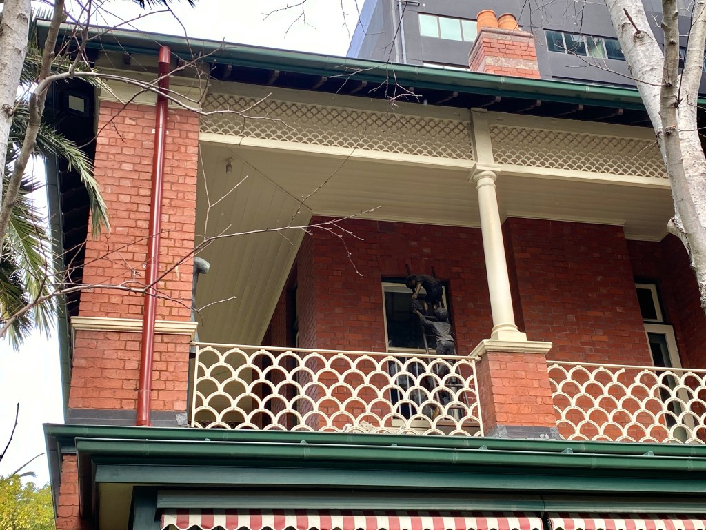 Landene, one of the remaining #stkildaroadmansions, but you’d have to say more of a big house than a mansion. Made a bit bigger by expanding the right front room downstairs into a sunroom. Built 1897 for McHenry England, tea importer. The heritage study doesn’t mention an architect. Unusual sort of almost Regency trellis pattern cast iron.