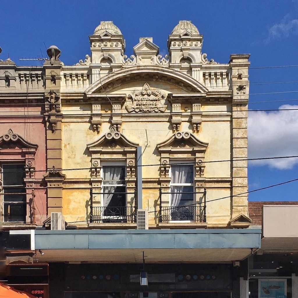 The excellent thoroughly #OTT #hoghvictorian #WustermannBuildings in #BridgeRoadRichmond. I presume c1890. Possibly #JABKoch since he was German as I presume mr Wustermann was, but there’s also German American #WilliamWolf. Update : no it was built c1901, so not by Wolf since hed left by then, but could still be Koch. Further update thanks to @jdflemington – the architects were Kelly & Ford.