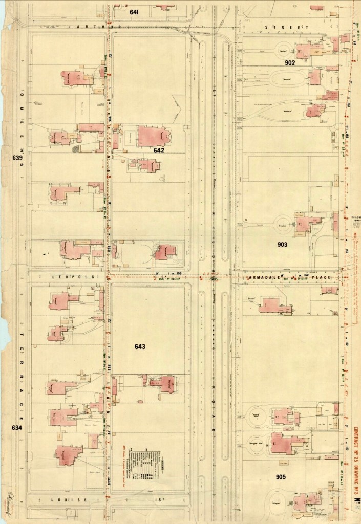 There’s 12 left, of which 8 are Victorian mansions, 3 Edwardian, and one built 1925. The colour plan at the end is a detail of an 1896 MMBW map. Yes it’s a great shame they’re all gone, but there was no such thing as heritage listing before 1974 – but then that should have saved the very first house, Armadale (pic 1), but didn’t, it was dem 1976, and most of all Koonwarra (1913), demolished in 1984.