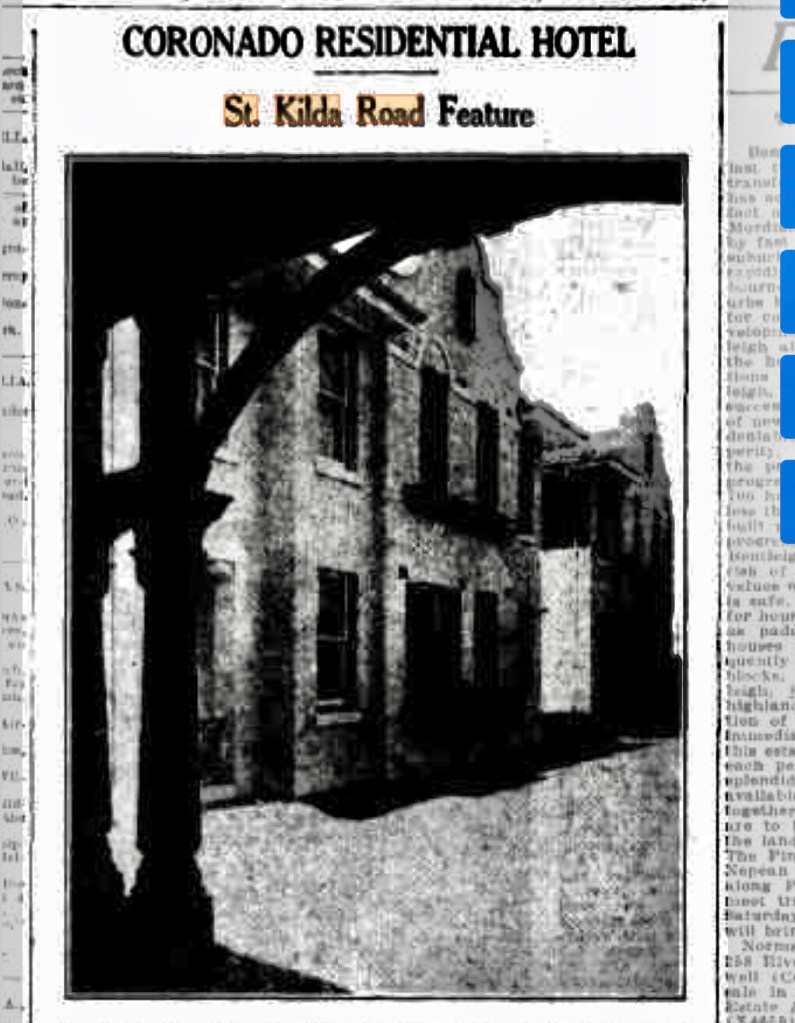 But by then many older houses had already become guest houses or flats, and some purpose built flats were already appearing too, eg Coronado Guest House, just before the Commercial Rd corner, built 1927. First aerial pic is c1925, looking south from Toorak Road, you can see lots of gardens, and the second early 1930s, showing big houses, only some Victorian.