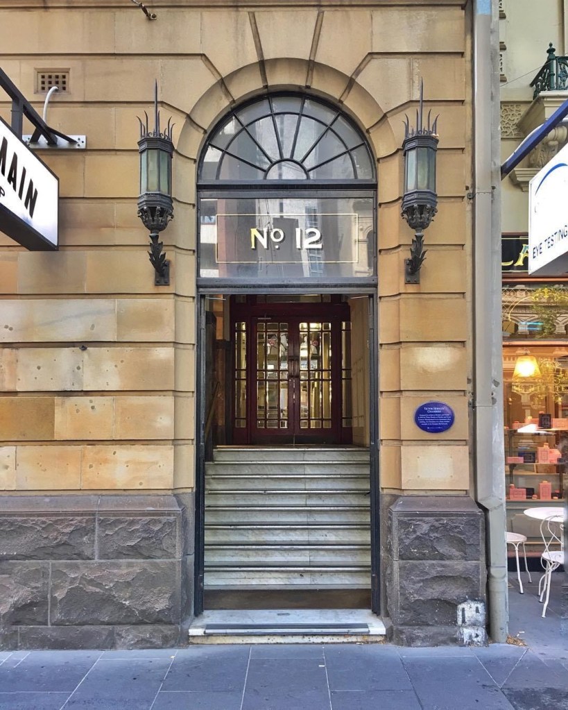 The sort of architecture that makes the #ParisEnd of #CollinsStreet so nice – a narrow arched entry to a small, refined, stone faced #ProfessionalChambers, mainly occupied by the medical profession. Built 1924 as #VictorHorsleyChambers, for Mr Horsley, ‘costume manufacturer’.