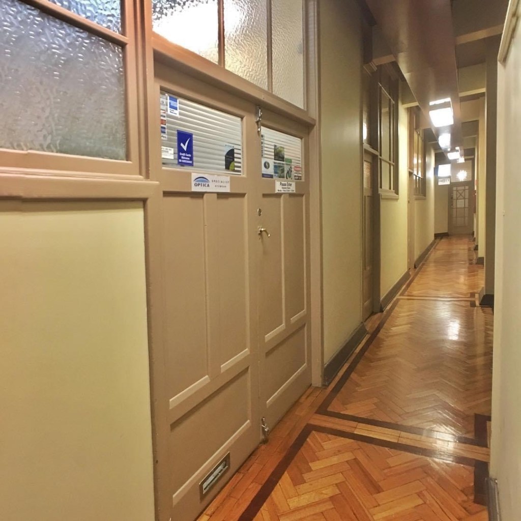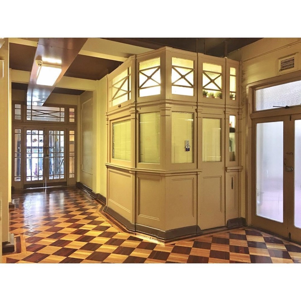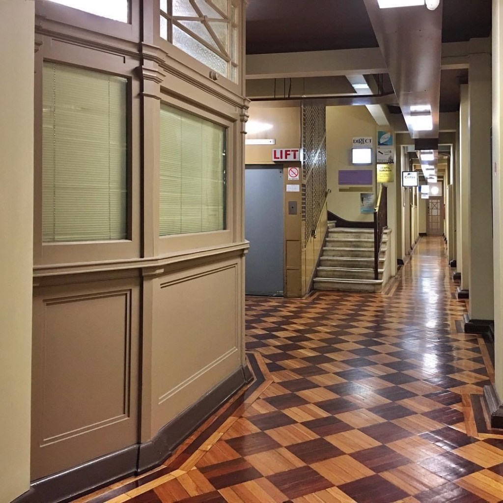 The nice but disused #conciege booth in #VictorHorsleyChambers; built in 1924. Fortunately it’s on the #VictorianHeritageRegister, or at least the front half is, including the hall, the booth, and the stairs and lift (sadly modernised) and up to about the first door (!). I think this is one of only 2 such booths in Melbs CBD.