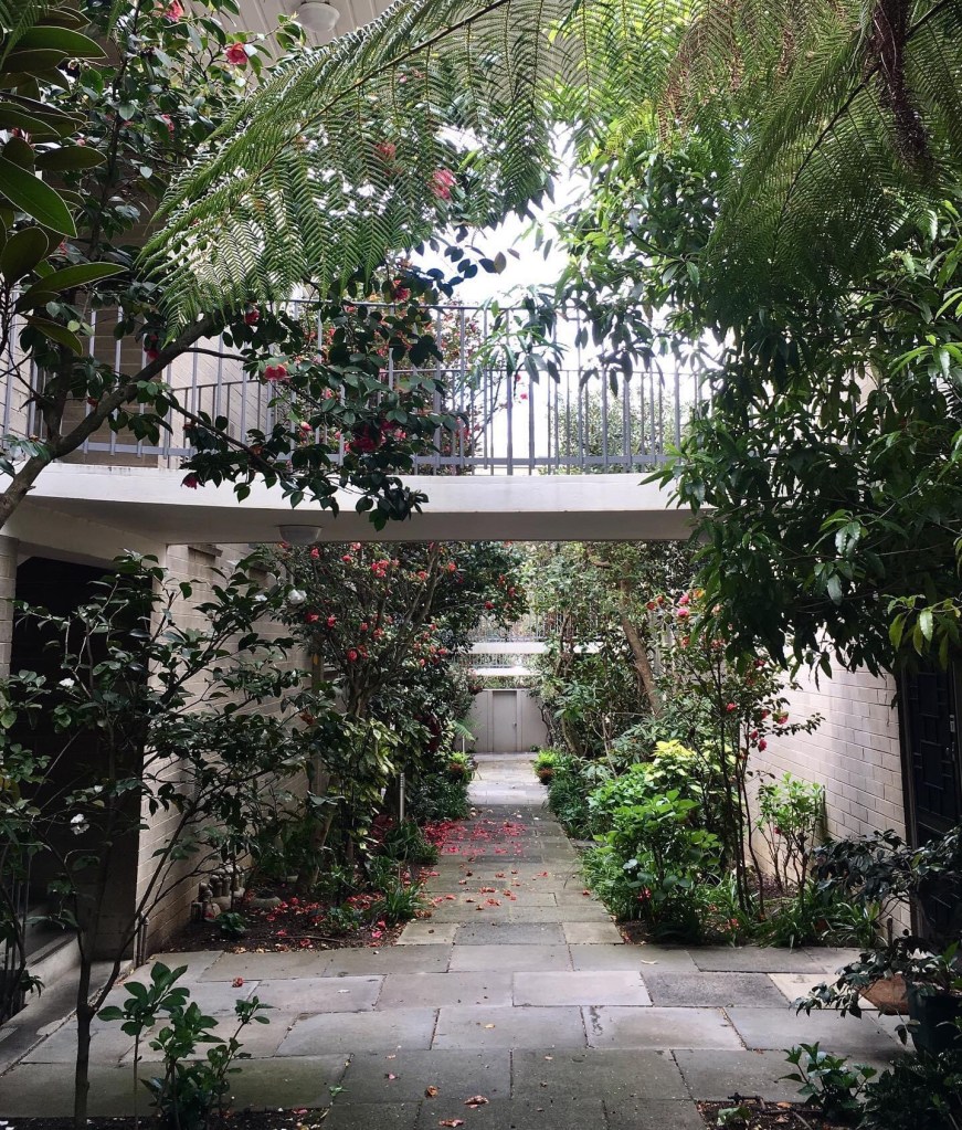This is seriously good; #Troon, in #OrrongRoad, #Toorak, 1957, by #JohnAndPhyllisMurphy. A long block with two levels of flats looking north over the car area, with a string of units behind, which face side courts, with bridge access over a heavily-planted walkway, all in #concreteblock. It’s a fair replacement for the first Troon aka Broceliande, a proto-Modern design by #HaroldDesbroweAnnear from 1918 that was possibly really refined Spanish.