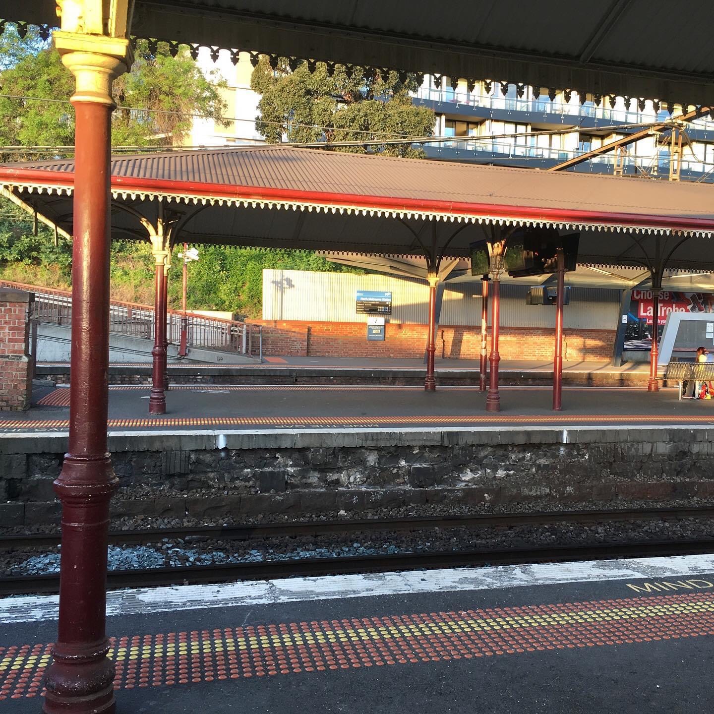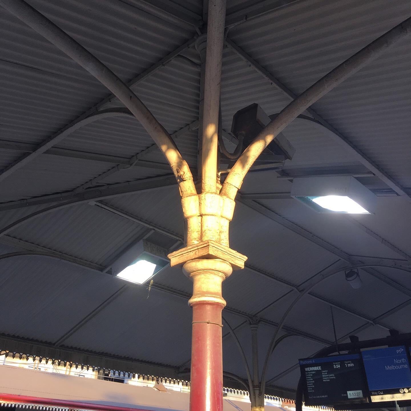 The original #NorthMelbourneStation was built in 1886, very charming #castiron structure, with cute cresting on the edges, and those built in drainpipe/supports. Small but decorative brick sections too, I suppose just empty these days.