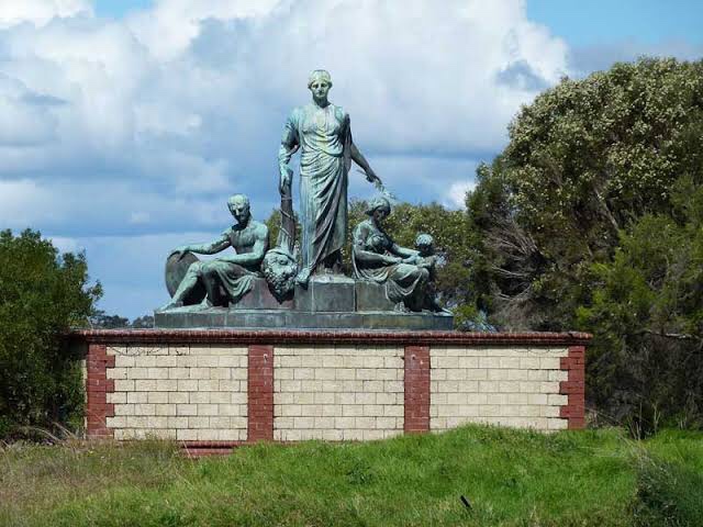 Hadnt noticed this before, on the 1930 Collins Street #AMPbuilding above the door – a #Statuary group known as #Amicus, apparently part of every #AMPbuilding, even into the 60s. Full title “Amicus certus in re incerta” (translation “”a friend in need is a friend indeed”). Here’s some others, first is 1912 from Oamaru NZ, the second from Brisbane, built the same year, 3rd is Perth, all that’s left of theirs, re-erected at Floreat Waters lake, last is Sydney, 1960, by Tom Bass.