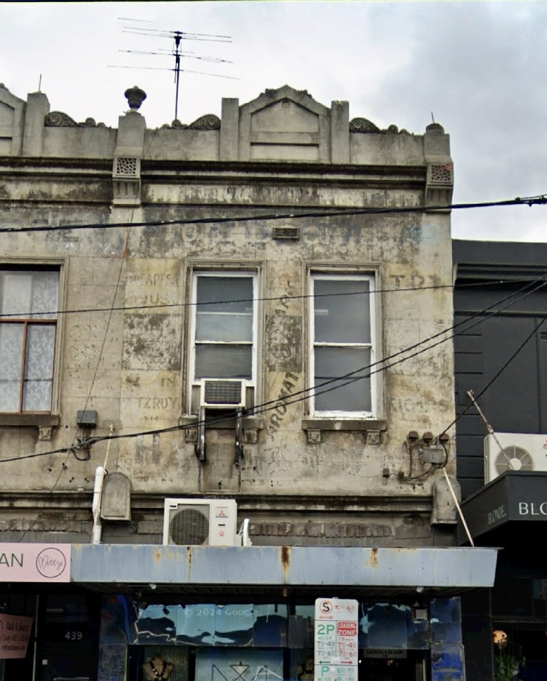 Photo of some ghost signs in Brunswick Street in 2016, above @lucrezia_and_de_sade near Alexandra Parade. Can’t read any of it except perhaps laundromat, which would therefore be 1950s ? Did they have laundromats earlier ? I’m sure @melbourne_ghostsigns would know more ! 2nd pic current streetview, doesn’t seem to have faded much. Update : tobacconist across the top, cigar to the right side, and aromatic rather than laundromat !