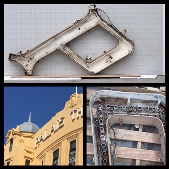 The #PalaisTheatre neon sign has been carefully restored – revealing the fact that is was originally lit in 1927 with white #incandescentglobes, and the fittings that remain are being kept. The neon came later, probably the 30s. The trays (except for the most decayed P) have all been patched and repainted and put back. The work was done by #ForteSigns, overseen by conservation architects #LovellChen (photos from their website). The neon tube lighting (in pairs of red and blue) is being replicated by #LEDstriplighting, rather than fragile expensive glass neon tubing, and I just hope it looks the same, but somehow i dont think it will replicate the particularly piercing quality of actual neon light.