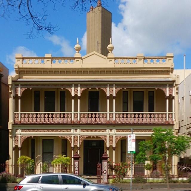 The third of the three of the #rowmansions on #victoriaparade, for a long time owned by the #eyeandearhospital. Built 1882 for Dr Buthner, who might have been Jewish, and the architect was Swiss immigrant #AlfredKursteiner. The rear of this was knocked off in 1995 for a 5 level #carport but that’s ok, can’t see it. Restored when carpark built, not sure if the verandah already restored by then. In the 60s, the @nationaltrustvic thought it was too altered to classify, changing their minds in 1974. Looked a bit bare before !
