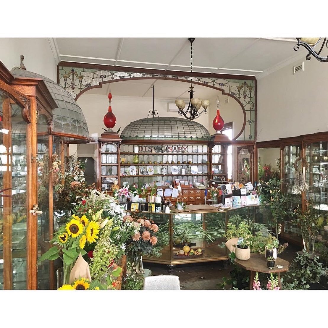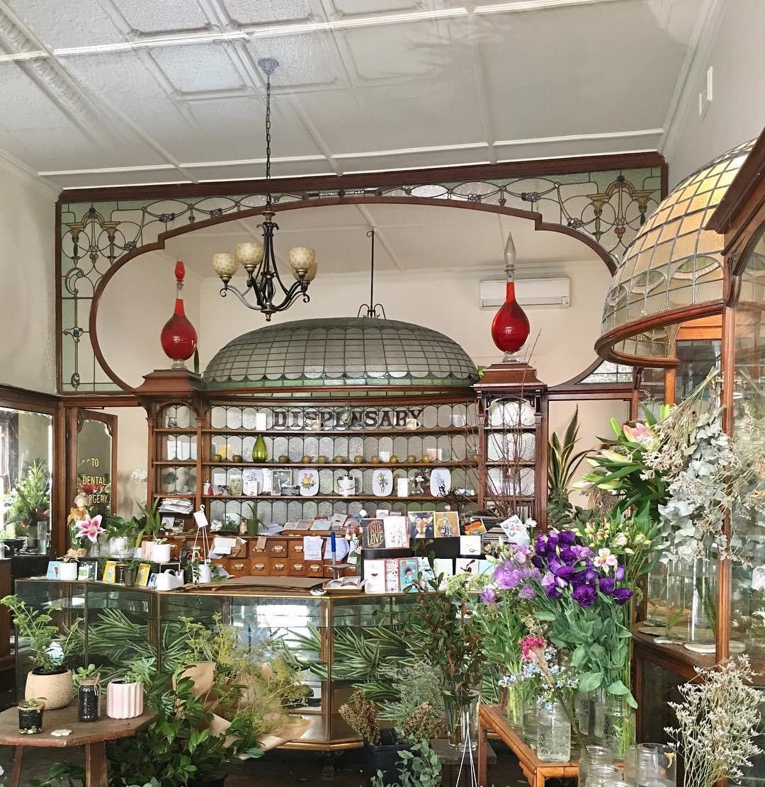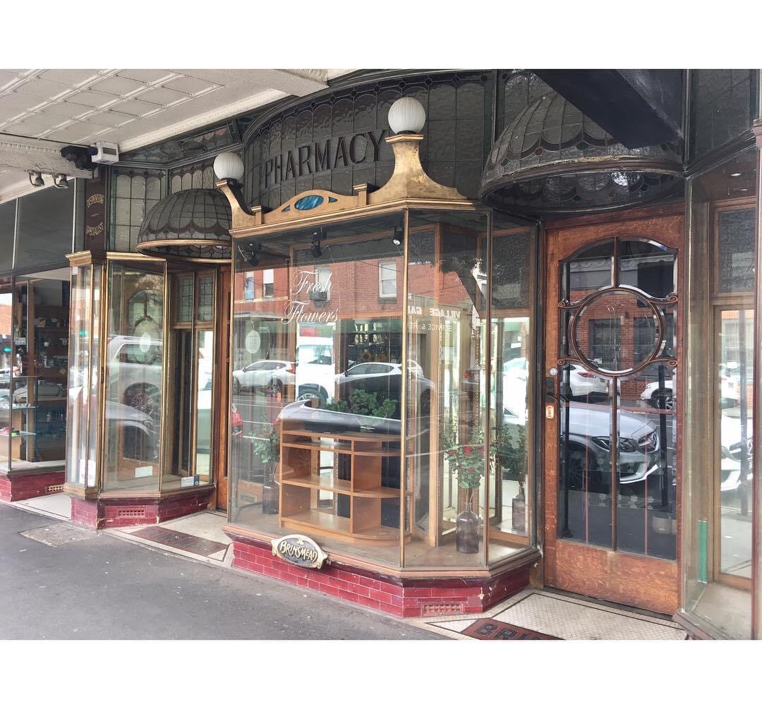 The most fabulous #shopfront in #Melbourne, possibly Australia, in #RipponleaVillage, an elaborate creation in coppered metalwork, #leadlight, and timber, described as a ‘showpiece’ for #BrinsmeadsPharmacy, built in 1918, fittings by #ThomasDuff & Sons. The building was designed by #SydneySmithandOgg – not for Mr Brinsmead, but for Mr Dalton who had bought the business, built this shop, and kept the name. Nicely reused as a flower shop. All protected on the #victorianheritageregister .