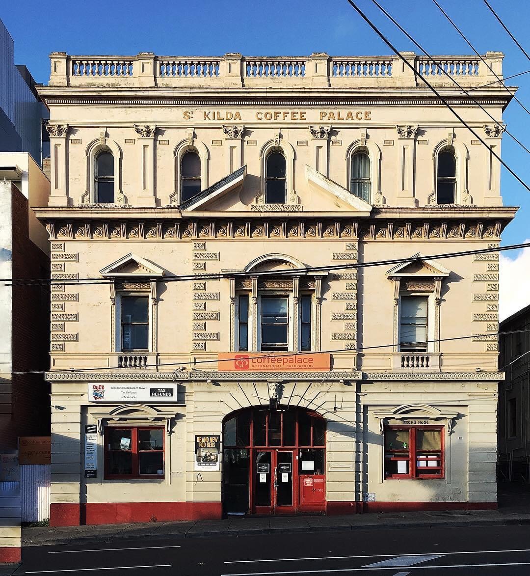 I’m a fan of green generally, but not this shade on this building ! I’ve lightened it up but it’s actually sort of a dark aqua. The St Kilda Coffee Palace was built as an assembly room (a hall for hire) in 1871, the converted by Reed & Barnes in 1883 into one of Melbourne’s first coffee palaces (a hotel with no alcohol). The top floor was added in 1888, but it seems to have closed that year, no doubt unable to compete with the huge George Hotel on the corner. It’s been a backpackers for ages, closed in the pandemic, now rebadged as a boutique hotel, but still really a backpackers. (Reaction on Instagram was very divided, many hated, some liked).