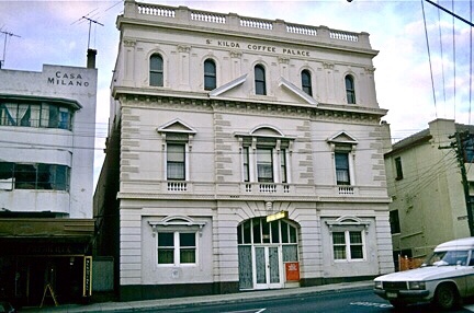 Just discovered that the top floor of the St Kilda Coffee Palace was added in 1888 to the building, which had been converted by Henderson & Smart from a hall in 1883 – so the much talked about ‘baroque pediment’ was actually just broken to fit a window ! Second photo is from NGV c1886, when the George Hotel corner section (on the left) was built.