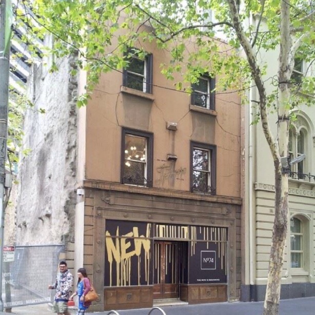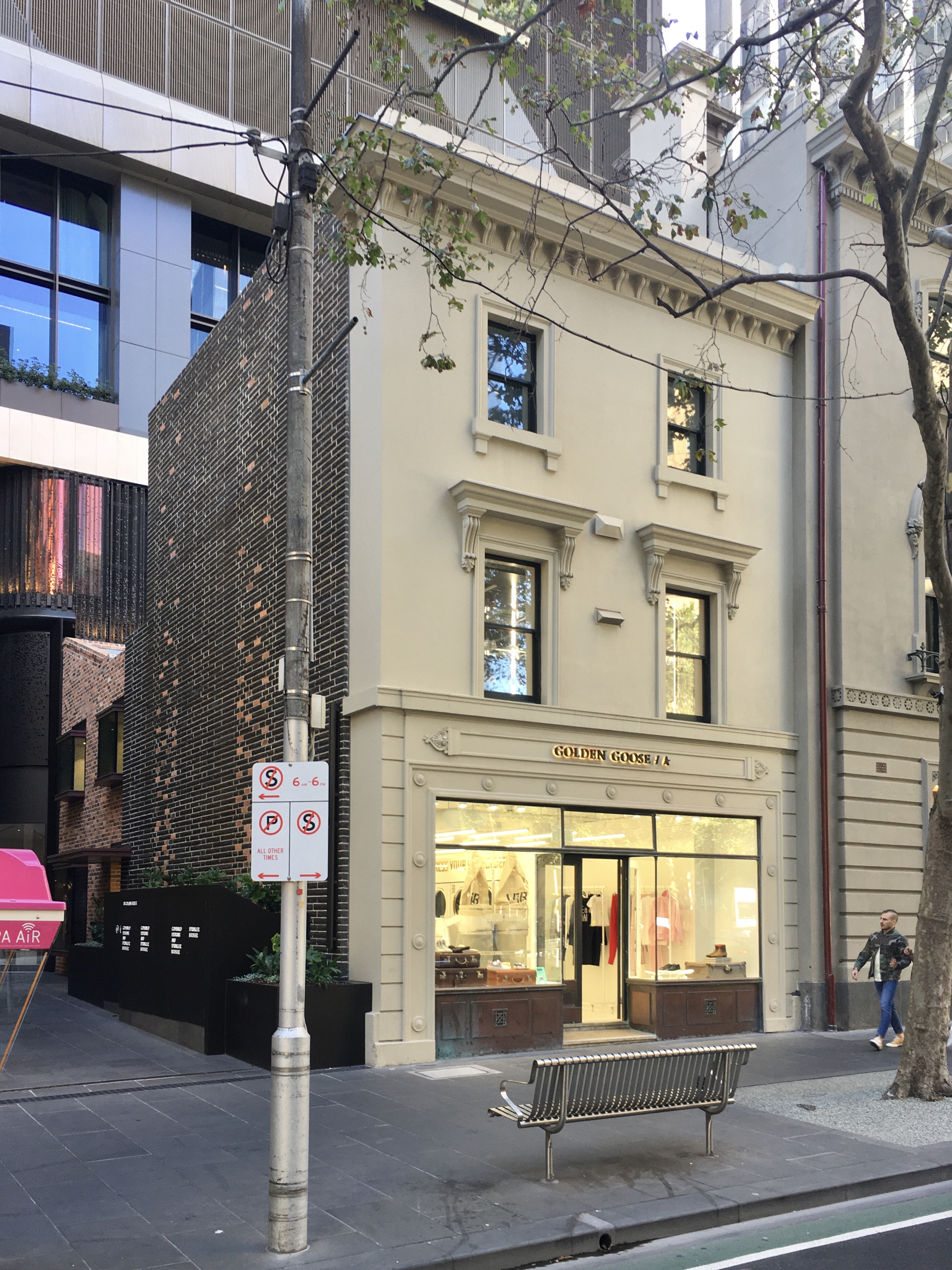 So finally got to see for myself what’s left of the former Le Louve boutique for myself – though it looks fine, the only original thing is the 1920s shopfront. This was a famous invite-only boutique, operating here from the 30s until 2013, run by Lillian Wightman, who refused to sell to Nauru House in the 70s, saving a piece of Collins Street, then by her daughter, who did sell to developers in the end. Lillian had taken an 1855 townhouse and ‘Georgianised’ it in the 1950s, taking off detail, adding some cast iron, painting it ochre. Despite all that history, it was only graded Contributory, and so the developers must have thought they were doing the right thing ? Putting all that detail back, so now it looks like before 1956, as in third photo. Except that they also only kept the facade – the famously rough side wall left exposed for 40 years was discovered to be not very stable, so it went along with everything else, including the rear brick bits too, which was reconstructed possibly recycling the bricks, but the rubble bluestone was rebuilt in conc with 60s style grey bricks (?). A whole series of unfortunate compromises, a bit like the city as a whole !