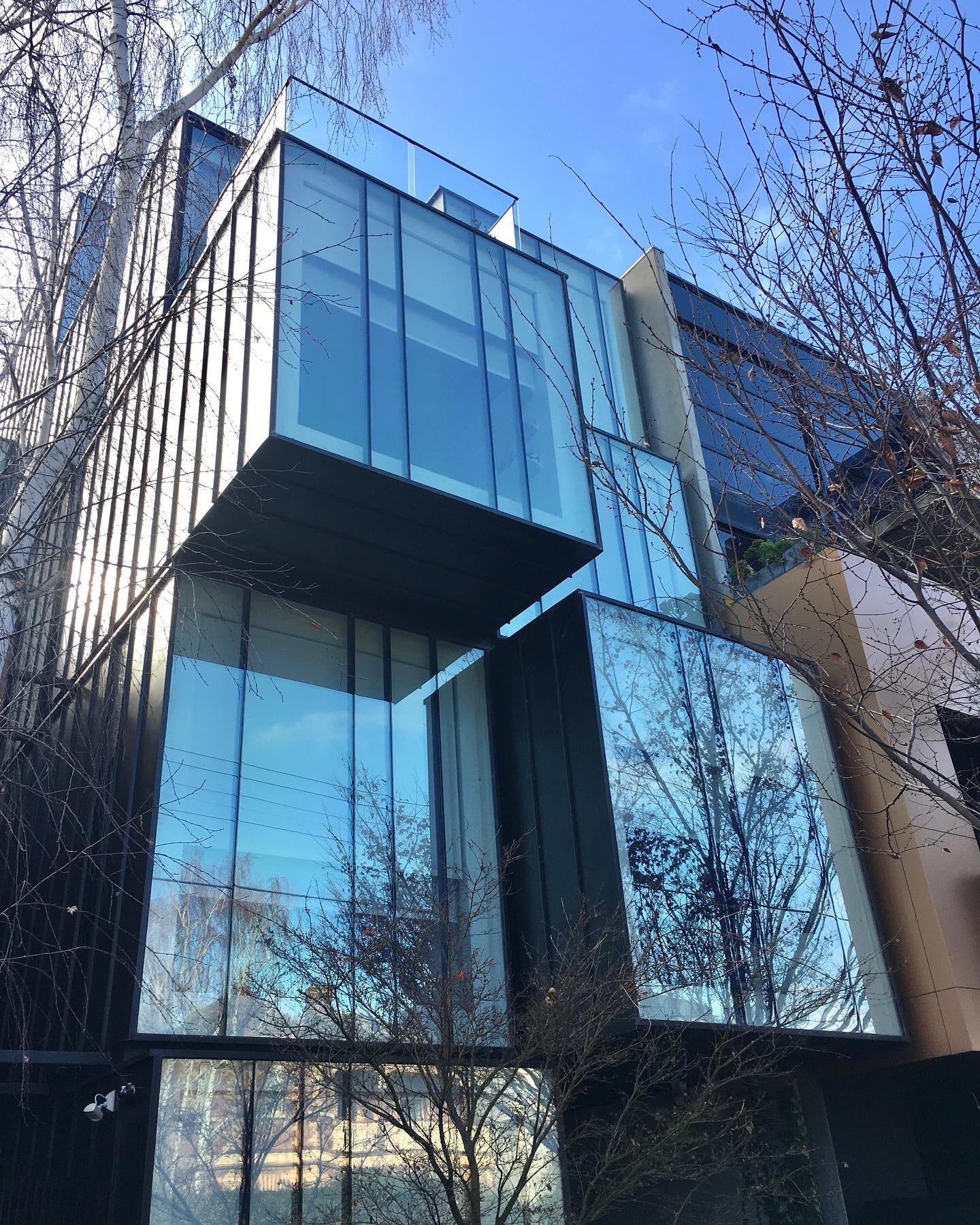 Spotted in Wellington Street St Kilda – and I like it ! Stacked shiny boxes. A bit crazy big for a house, but built for builder David McCallum and partner and children and their partners – some of the bedrooms are the size of a one bed flat or studio, but they shared the huge kitchen. The architect was @mattgibsonad. Finished in 2015, they sold up in may 2021 for a reported $6.7mill. There seem to be more and more people with many millions to spend on their homes – guess it’s the world wide scale of business these days, and in the cities, a concentration of wealth, driving up property prices and in turn accumulated wealth. Though in this case it housed more than one family.