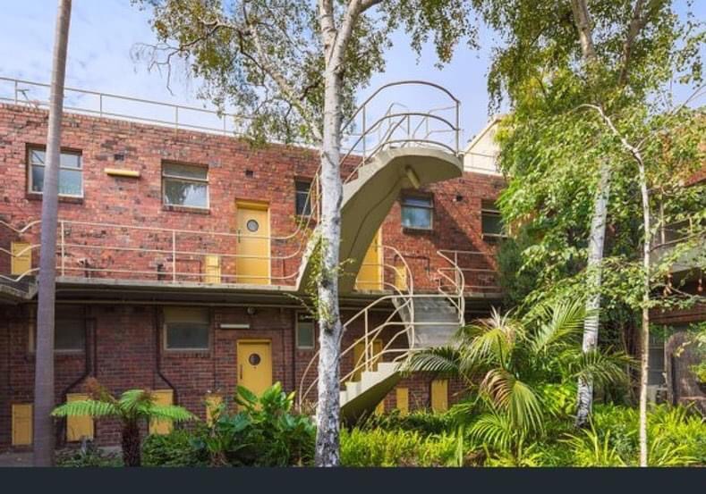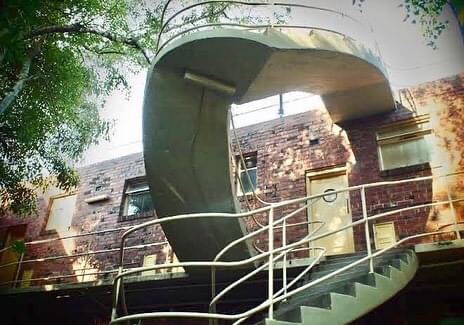 The exotically named ‘Cairo’, Nicholson Street Fitzroy – a set of ‘bachelor flats’ with those famous cantilevered stairs. Many flats are compact #bedsits, with huge windows mostly facing north, with little balconies, so very light (perhaps too light in summer before the trees grew?). There’s 26 of those, while another 10 are one beds. Designed by architect Best Overend, then in his mid 20s, who was inspired by the similar landmark white Modernist Lawn Road Flats in London, which he had worked on in 1931. But here he used #clinkerbricks, a bit more homely than white render, and facing the sun was a German idea. There was also famously a restaurant/cafe facing the side street ‘for the convenience of residents’ but not sure it ever operated to the point they didn’t use their kitchens, which were TINY, partly because they included a ‘dinette’ (built in seats for two), of none survive (all kitchens and bathrooms replaced in c2002, despite it being on the Victorian Heritage Register). I was reminded of this place when I discovered there’s a 2013 novel set there ! Author Chris Womersley. Set in 1987 with a plot revolving around the theft of the Weeping Woman from the NGV. Can’t get more Melb than putting all that together. It’s a good read with a surprise ending. In the 80s Cairo was popular with archi students that I knew, and I visited, it’s nice, but I don’t think I could cope with a one room flat.