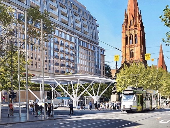 I was wondering what the new City Square was going to look like and realised the plans I have from 2017 are probably it – much the same as before, but about 1/3 taken up by the escalators and lifts and a flat area to get to them, all covered by a big glass roof (final design uncertain). There’s a bit more grass, a nice spouty water feature in the middle, while the lifts and vents are just flat clad in bluestone- it’s all very uninspired, especially compared to the stylish and impressive station hall below. And they’ve got Burke & Wills behind the tree line instead of on the corner (but perhaps that’s ok for over – herocised old white men idiot explorers?). Designers probably jointly the City of Melbourne and Metro architects Hassel with Rogers Stirk Harbour. Surely they could have given the design some spark ? And at least we should should know what the design is ! (But personally I’d rather see the site as cafes and lanes and buildings with interesting functions upstairs such as the city library – we don’t need the city square at all, we’ve got fed square, and we’ve lived without it for 6 years…)