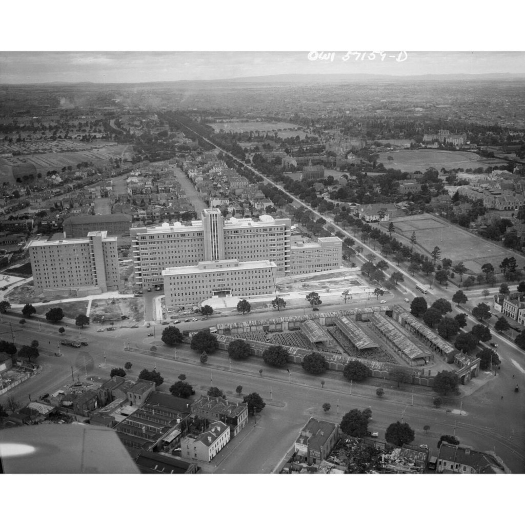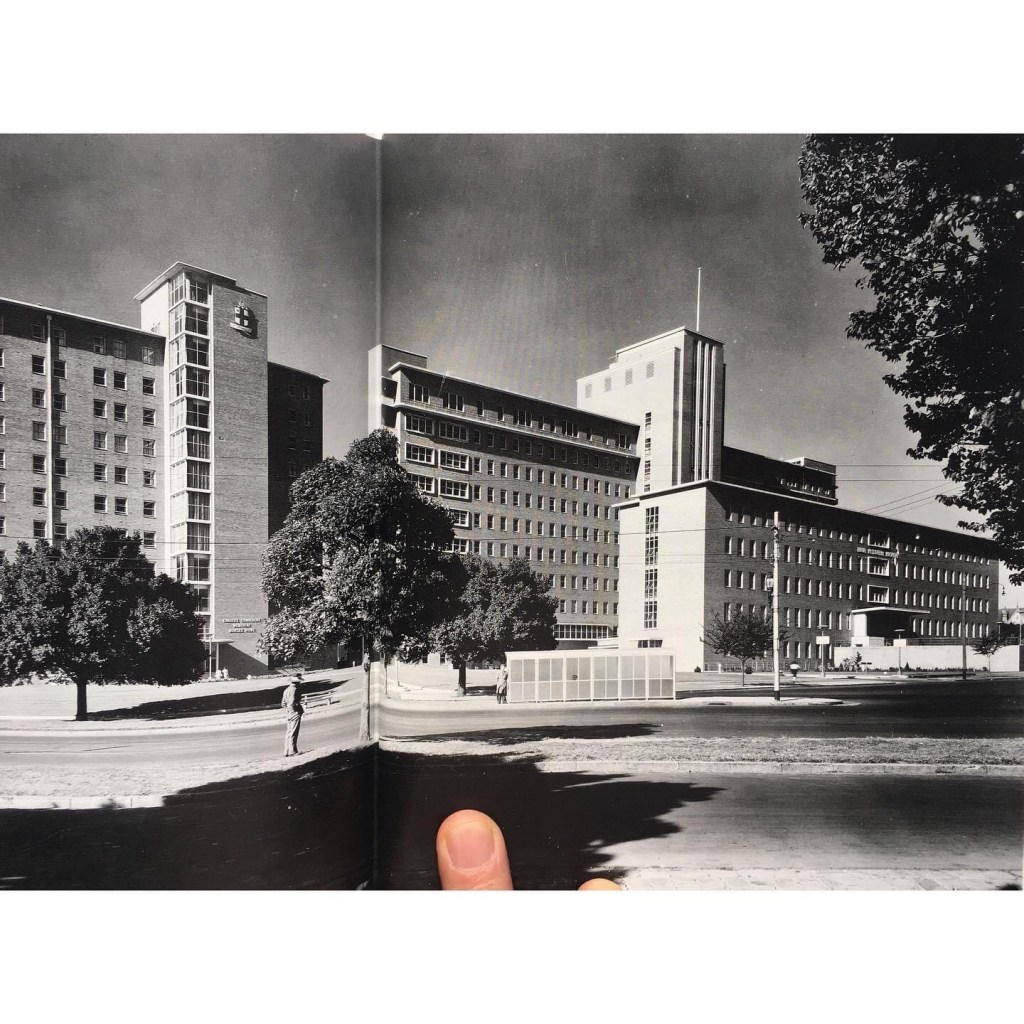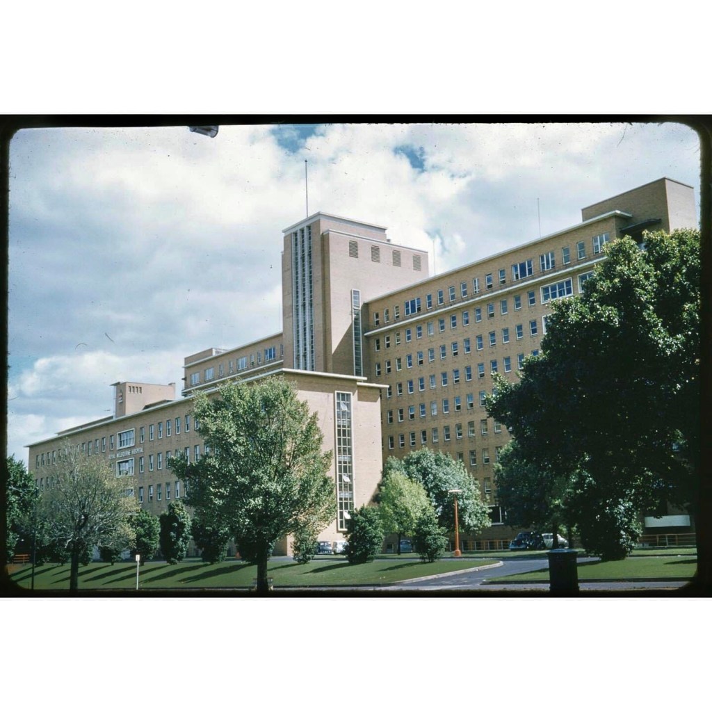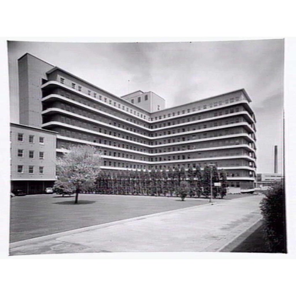 The Premier announced that when they build a new Royal Melbourne Hospital, and a new Womens, in Arden, that the old one would be demolished – but in the middle of an awful lot of additions, the original 1941 building is reasonably intact. It was the biggest most modern hospital in Victoria at the time, designed by hospital experts #StephensonAndTurner. It was also seen as dramatically Modernist, with no decoration, just a lot of sweeping balconies (on the rear/north), but also a vertical tower aligned with the Elizabeth Street axis. Worthy of preservation somehow I think, but old hospitals hard to reuse as new ones. First image from a book on the architects, other images State Library Victoria or National Library, last one mine from 2015.