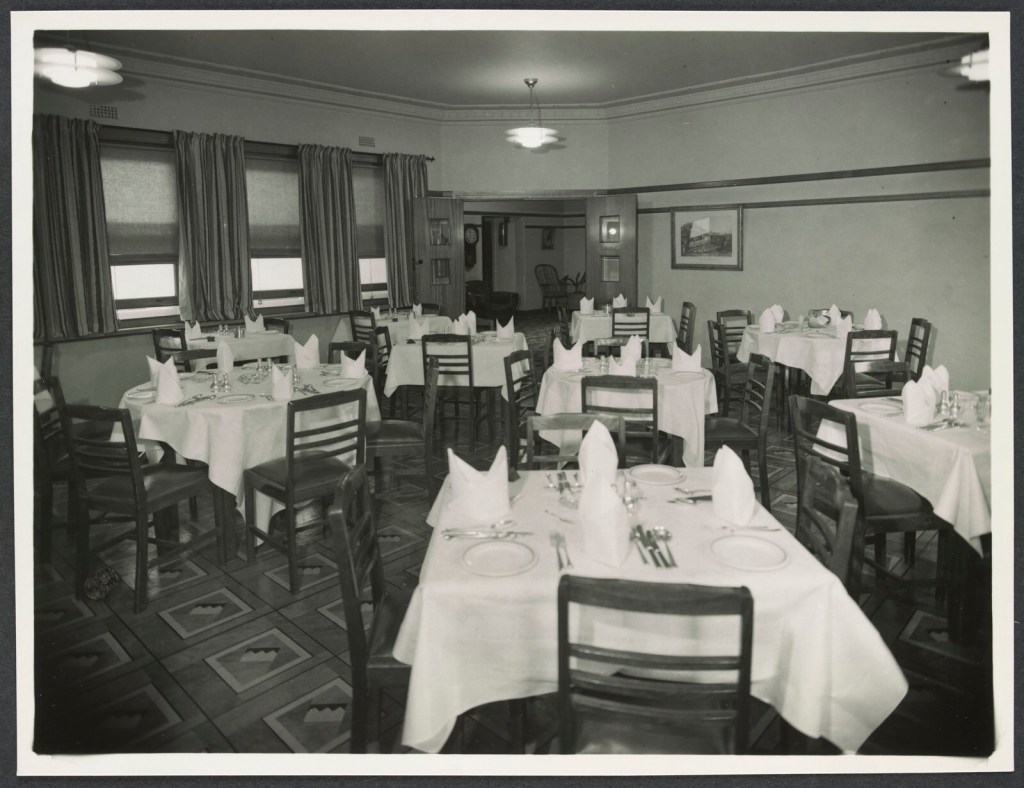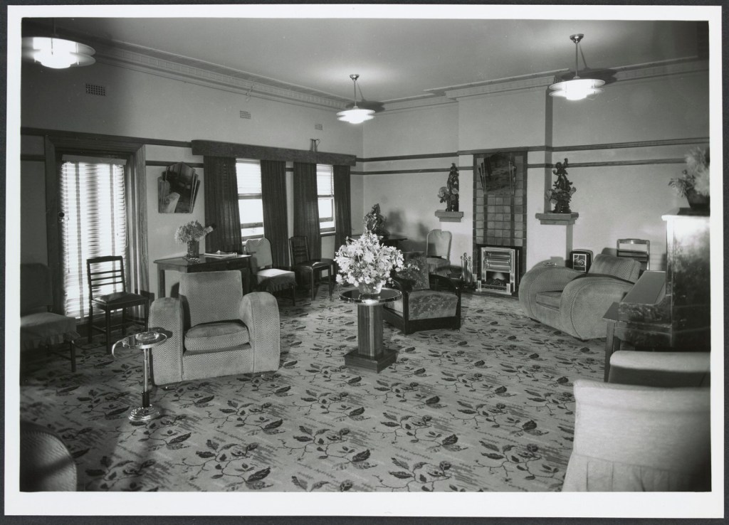 The State Library has a lot more interior photos, they’re dated 1964, but are probably c1940, when it was finished, or soon after. One shows the bar, which is original and so very rare ! It’s lost its top bottle store thing though. Current photo from hotel website. Then there’s the guest lounge, the dining room, and the cook in the kitchen (!).