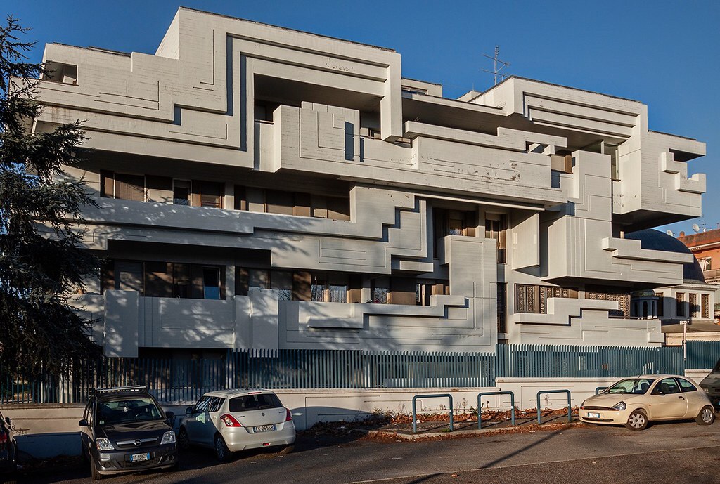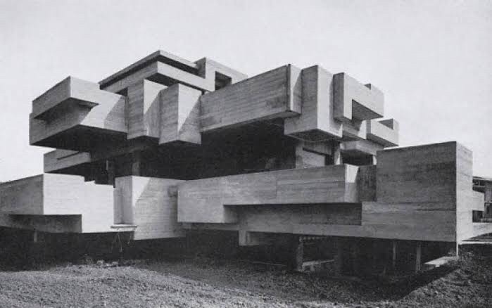 By comparison- not Melbourne but so amazingly sculptural. I got the 2018 ‘Atlas of Brutalist Architecture’ from the library and there’s so many great things I’ve never seen from all corners of the world – and the Italians (of course) were particularly creative /out there – such as the work of Saviero Busiri Vici. Love the quite mad house from 1973 in Rome, a suspended origami almost of concrete forms (1st three pics), and his similar styled apartments called Edificio Pluriuso from 72, also in Rome. I can see in the latter the influence of Frank Lloyd Wright, via the steppy very detailed often concrete work of Carlo Scarpa (another book I’ve got from the library!).