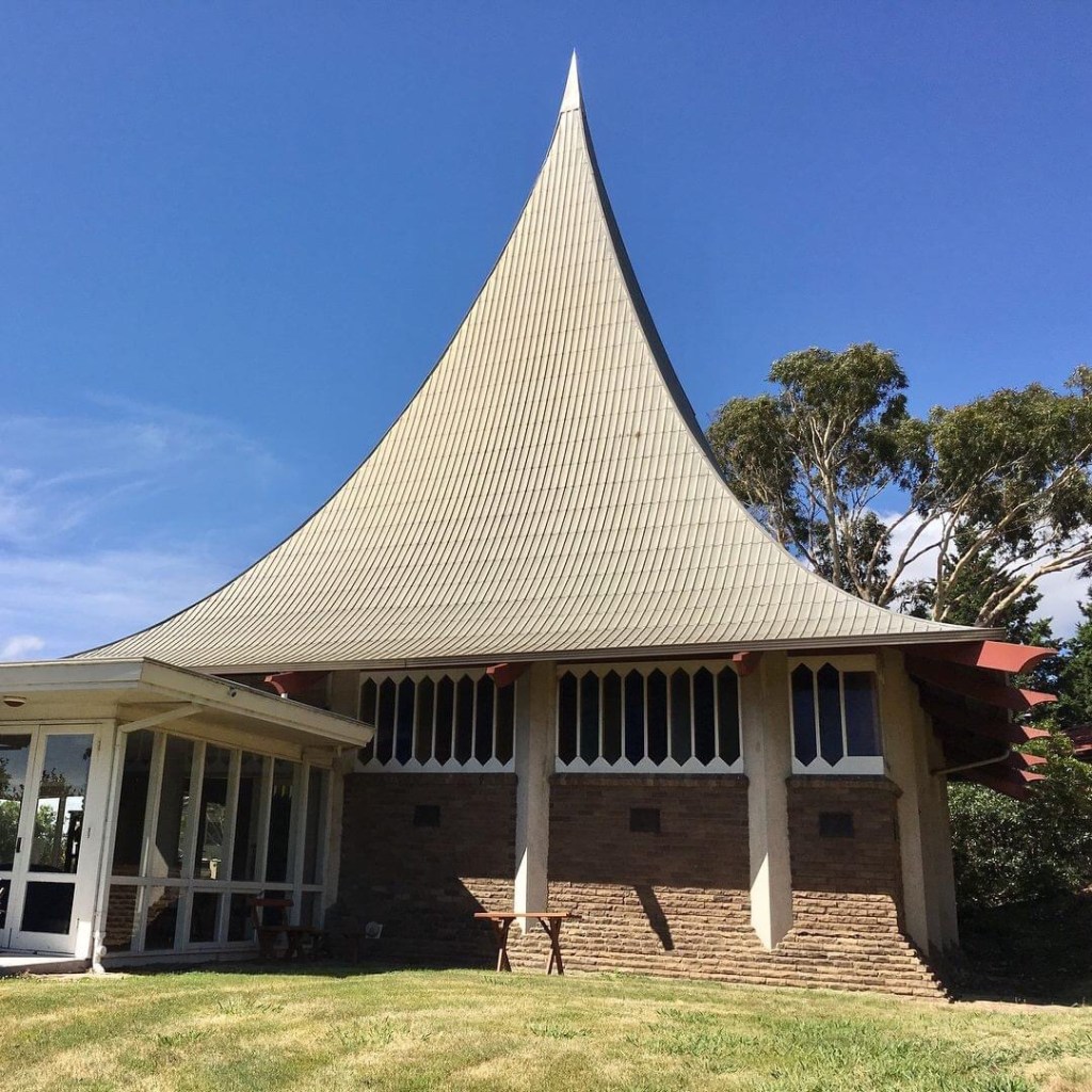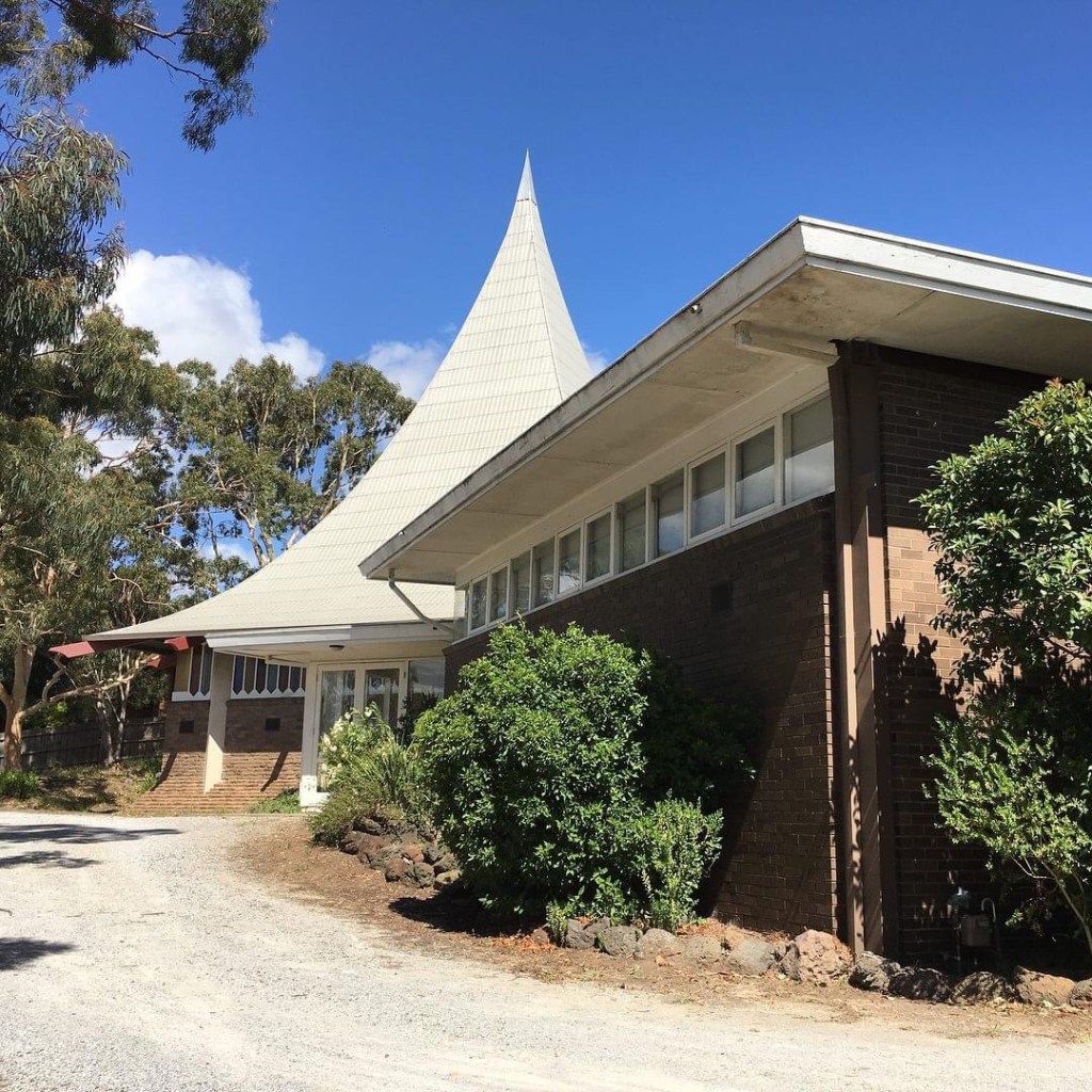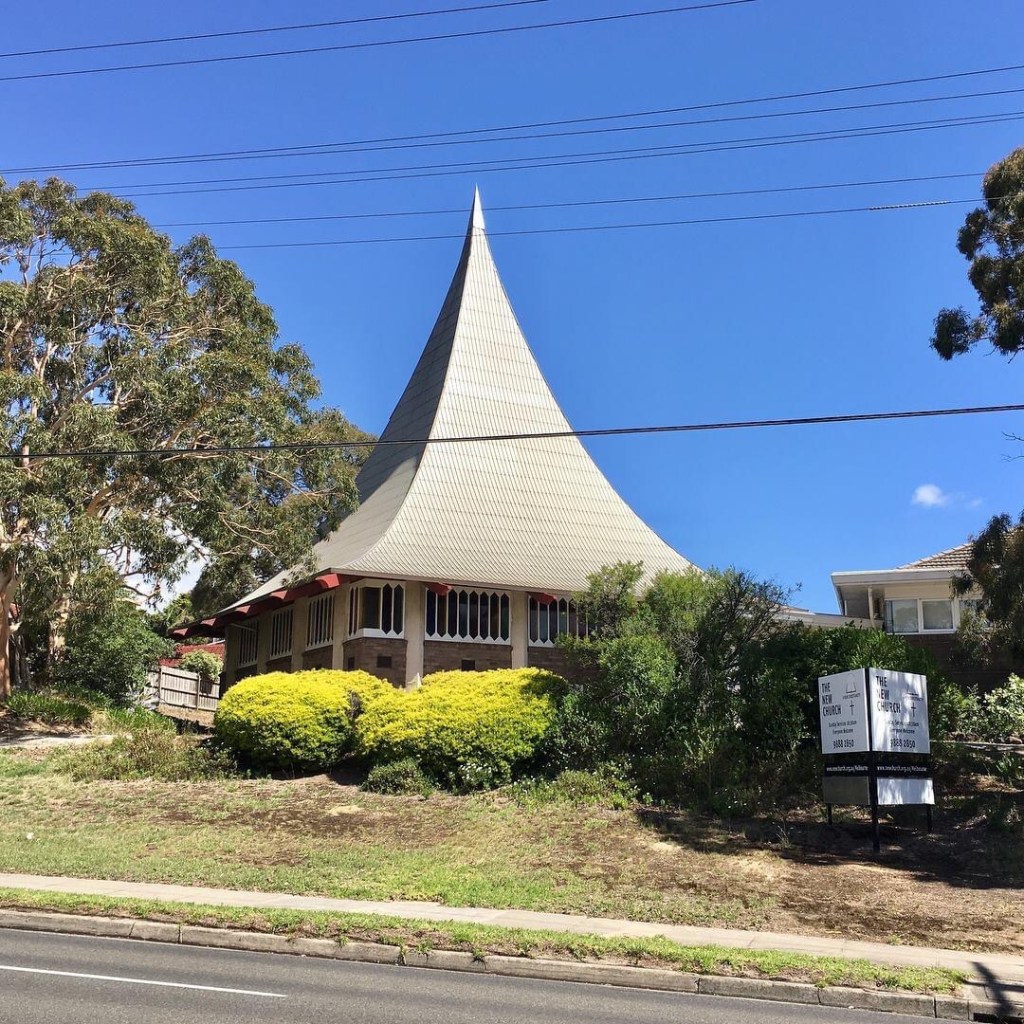 This wild curved pyramid roofed church has been sitting here on #HighStreetRoad #MtWaverley since 1963, when it was built for the independent #NewChurchinVictoria, designed by architect Alex Harris. It’s a plan of intersecting squares, two on the diagonal, the third being the hall, but that roof ! Sort of #polynesian or maybe #pagoda, or just roof and spire in one ? The windows and wall base are bit #WalterBurleyGriffin I think. This is one of my top 40 modernist churches in Victoria, not many of which are heritage listed- this one isn’t, and was sold last year as a development site, but it’s still there now for lease, so the last 3 are some interior shots, complete with stuff the Church left behind when they moved. Rest of the photos mine, except the second is @library_vic.