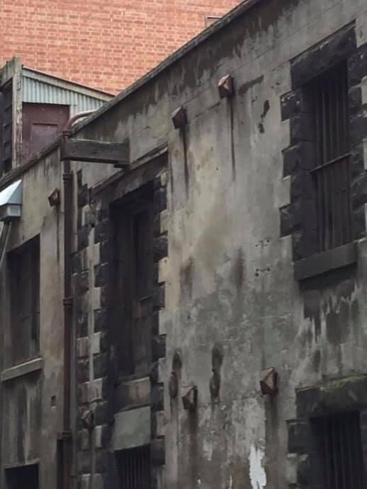 A remarkable survivor, an 1850s #warehouse in the eastern end of #flinderslane in chunky #renaissancerevival style, love the #rustication. Designed (probably) by #RobertsonandHale, 1857, for Levy Brothers. There’s a very faint #ghostsign for Higson & Son; that side is #HigsonLane (which wasn’t named until the 1920s). There was another ancient fading sign that said Ryzman & Co, now faded away and mostly painted over – the Ryzman family bought it in 1945 for $13,000 and presumably still own it; in the 35 years I’ve been passing by I’ve only seen the door open once and an old man going in – there (was) another ancient fading sign that said Ryzman & Co, now mostly painted over – perhaps I saw Mr Ryzman ? Photos of the side, sign and stair from #heritagevictoria.