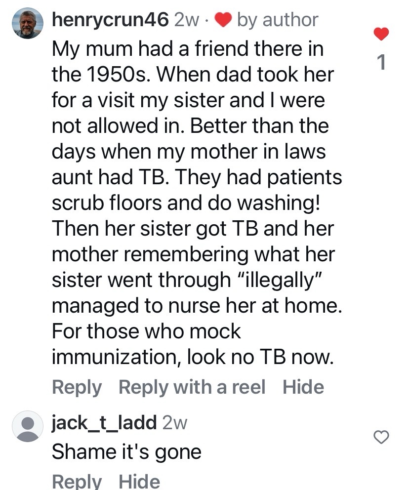 Facebook friend Paul McCluskey last time sent me some pics of his mother as a patient there in 1952.