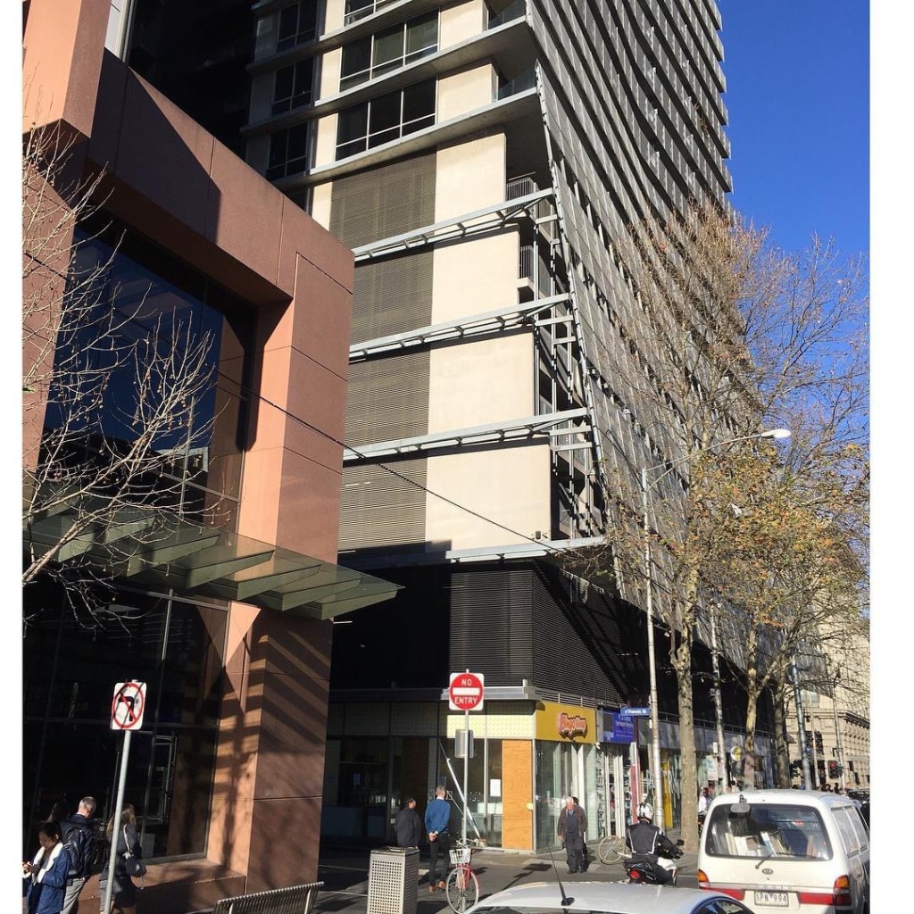 This building bugs me every time I see it- not because it’s bad architecture but because it was the first building after #plotratio was dumped in 1999, just as the apartment boom started, with lots of big buildings that went straight to the Minister (over 50,000sqm rule) and his department (or was it mary delahunty ?) didn’t ask the city of melbourne or ignored them, so things like setbacks and podiums were immediately unimportant. I was shocked when I first saw this, no setback at all on the #Collins street side, and a form that sort of bears down on pedestrians, and the bottom four floors are #carparking, sticking out a tiny bit over the footpath ! Pdiuns and plot Rayo reintroduced in 2016, and above ground carparking about to be banned (go @andy_fergus!) Architects #elenbergfraser and it’s called Liberty. @ Southern Cross railway station