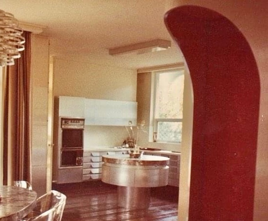 It was heritage listed by @cityofgleneira in 2021, but they didn’t list the interior because it had been ‘too altered’, so it seems who ever bought it in 2015 altered it a bit more, but hard to say since there’s lots of photos from then, but only two from before, the muddy blurry ones (via Simon Reeves of Built Heritage), and they show that in 2008 the bar was moved, and the kitchen cupboards were new, only the fab circular island was original. What’s more the 2021 panel report noted that ‘’bespoke timber work’, light fittings, and the ‘futuristic kitchen’, had all been removed, which sounds like even more was changed or removed, but hard to know exactly what. And of course makes me think why would you buy such a unique place and then remove some of the best bits ?