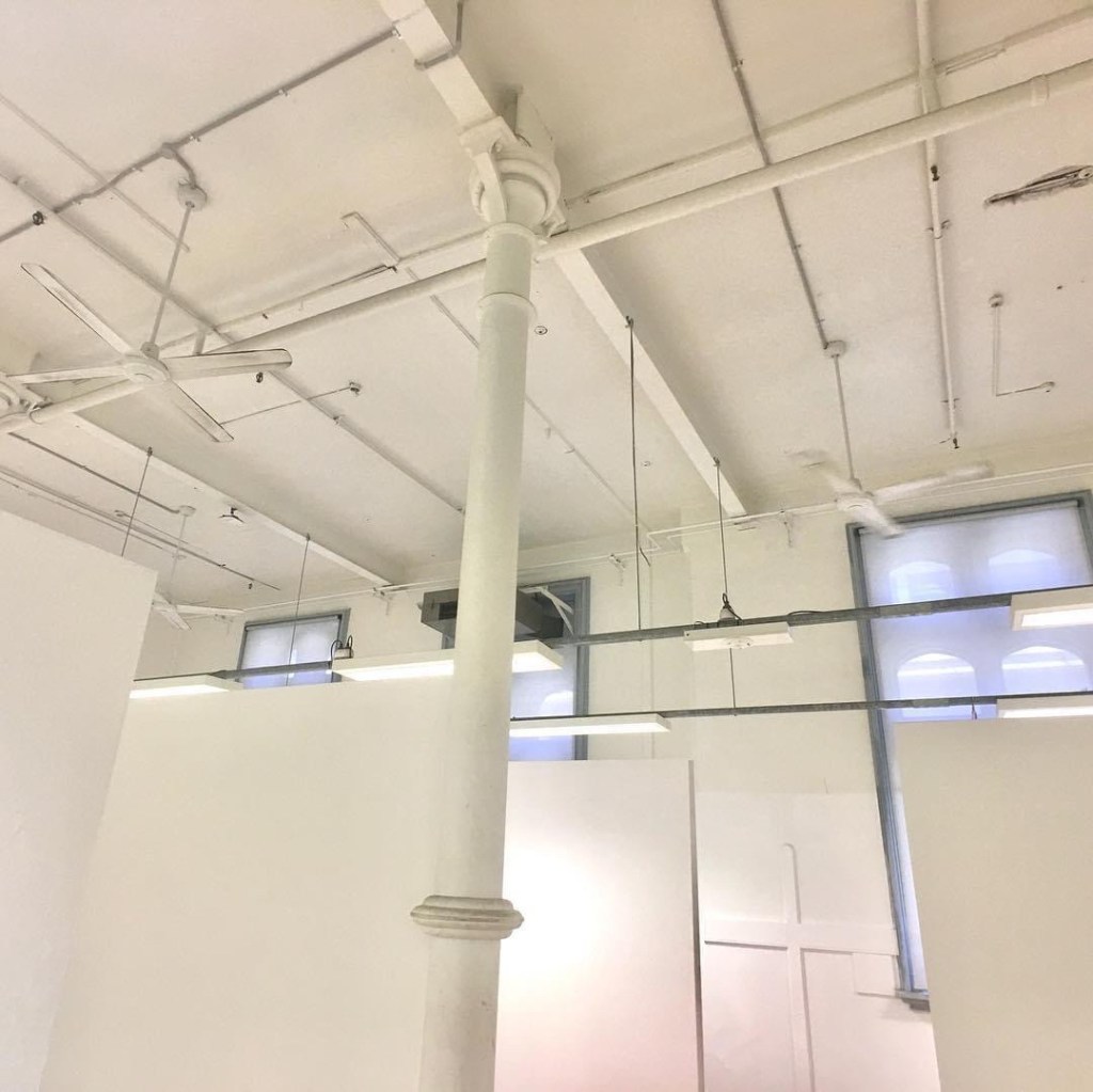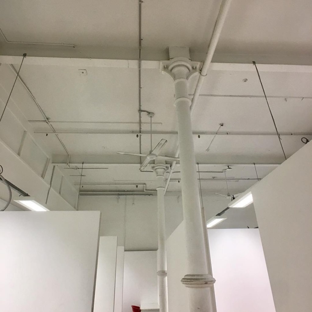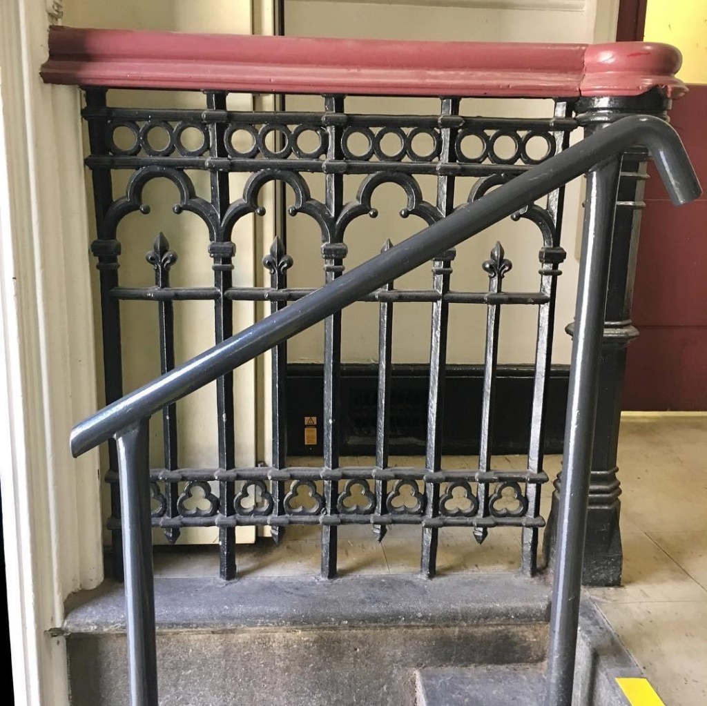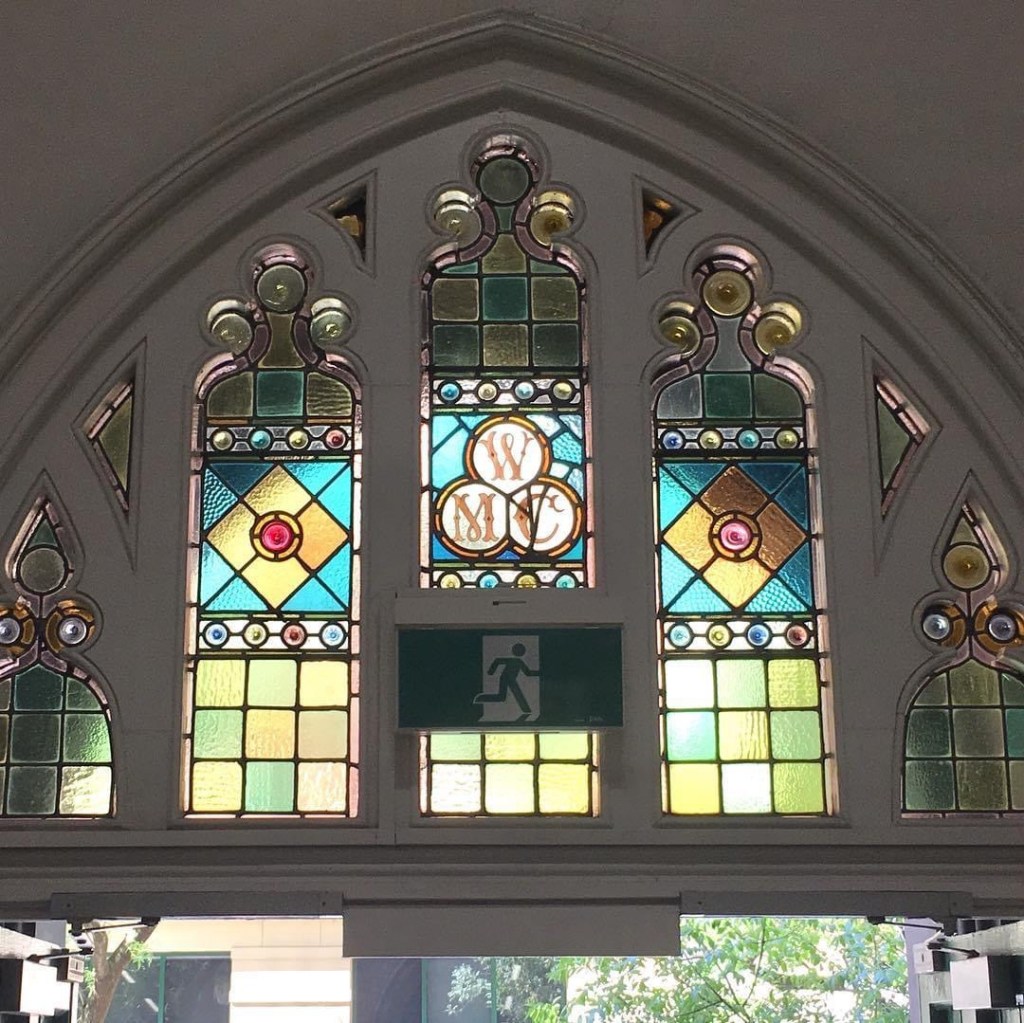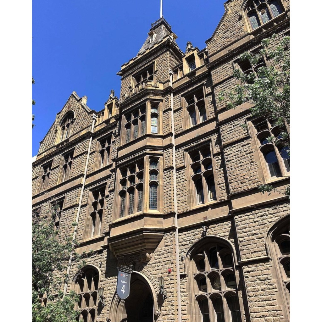 #Building4 at #RMIT, the first big workshop, and the second purpose built venue, designed in a fairly elaborate #GothicRevival style in 1890 by #OakdenAddisonandKemp, who had done #Building1 (#FrancisOrmondBuilding) a few years before in a bolder, simpler Gothic. The interior is all original no-frills exposed structure of #castiron columns and (probably) wrought iron beams, but some delightful leadlight windows, the best one on the first floor.
