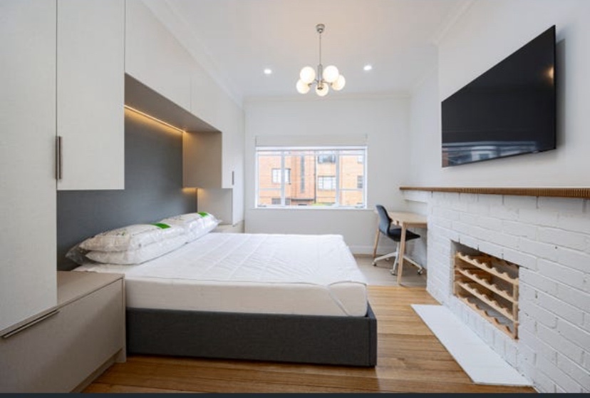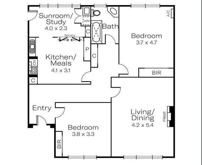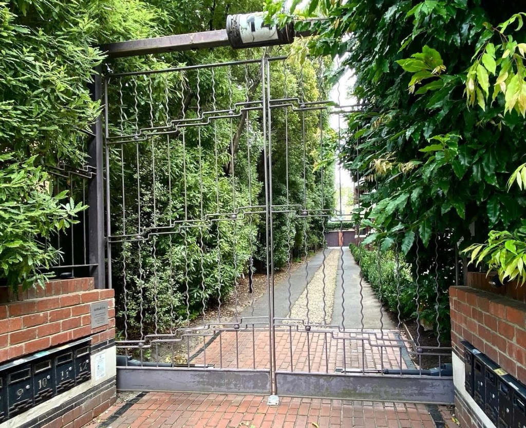 I had the impression this big block of Art Deco flats in Robe Street St Kilda was covetable, but now I look closely there’s only a modicum of nice original features; the fancy ironwork is I think all 1990s. The flats themselves are spacious, with a hall, room for a table in the kitchen, and north facing sunroom too, my favourite thing, and just as well since they face south over the heavily planted driveway, so might be cold and dark in winter (but cool in future hotter summers). Still, very nice, and good location.