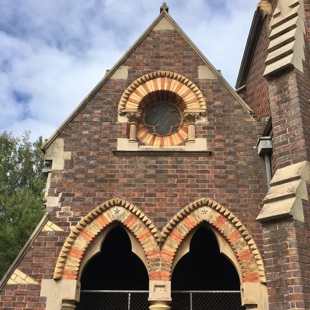 The fantastic Wesleyan Methodist Church in Sydney Road Brunswick is in the news, with neither the private owners or the Dep of Education taking responsibility for maintenance, leaving the community school that occupies it, and the equally interesting Sunday school behind, in leaking buildings. Heres my 2019 post : I reckon this is the best #polychromebrick church in Victoria, perhaps even the most #highvictorian, and one if the earliest, full of elaborate details. Designed by #TerryAndOakden and built in 1872, it’s got arches within arches, a stepped tower with a columned open belfry, an inset arched entry, and a secondary gable entry on the left, with that very cute #belvedere thing above, three colours of brick, and carved stone. Love it. Hope it gets fixed up soon. I don’t mind if it becomes offices, as long as they don’t change it too much inside, though I’ve no idea how intact it is.