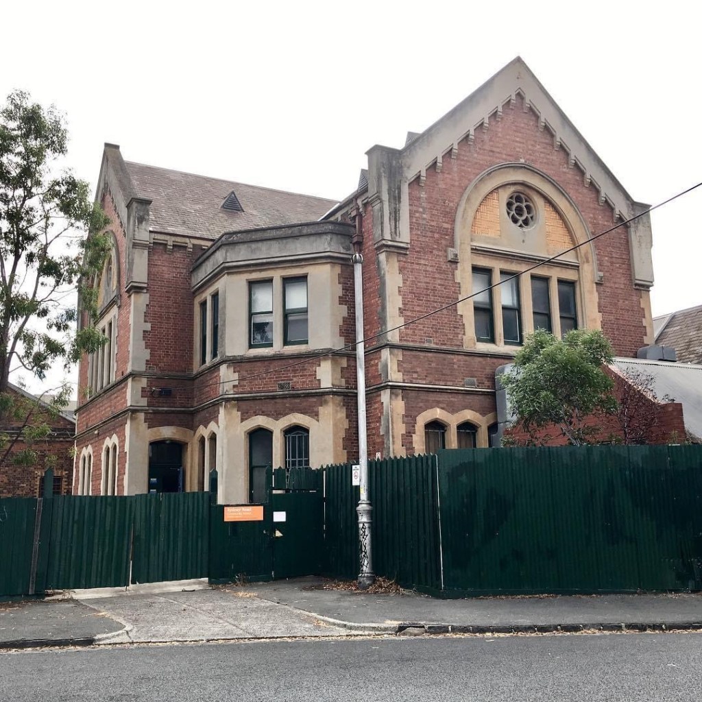 Not much to look at but unusual – it’s a very grand #sundayschool, behind the 1872 #WesleyChurchBrunswick, built 1886, designed by #AlfredDunn who burst out with lots of interesting stuff in the late 1880s then died. It’s sort of semi-circular, with three classrooms poking out in three directions, with sloped floors, all facing stages in the middle (like to see a plan…). It’s a #communityschool now, but looks deserted…
