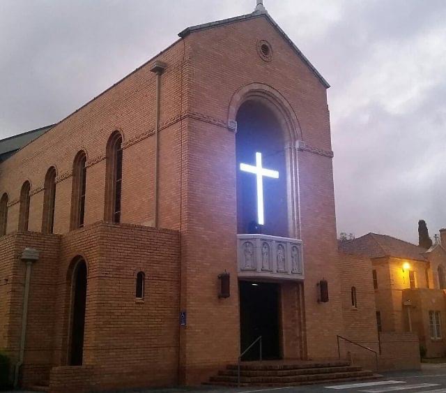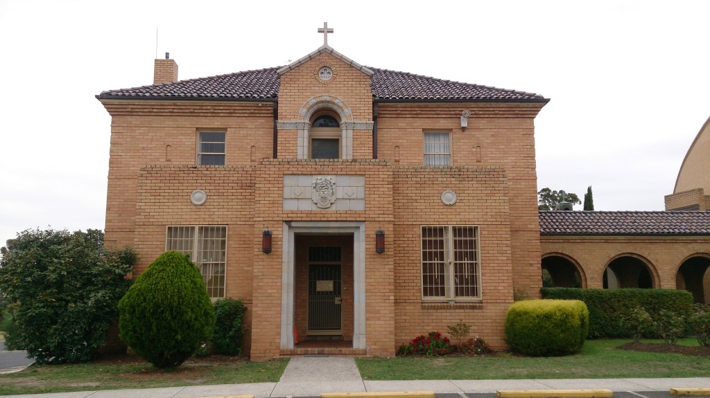 Sitting up on the top of a hill in the outer east is the ex-Sacred Heart Croydon Monastery complex, completed 1939. Designed in a nicely stylised #romanesquerevival, in then modern #creambrick, by Lionel San Miguel, a Portuguese born Melbourne #architect, who did a number of notable buildings for the Catholics. The Chapel, with its huge deep set arch, is surrounded by the monastery, which curves around behind, with a lovely cloister, and some great terrazzo. I think the bits that look like stone are actually terracotta. In 2000, the chapel was enlarged to the rear to become the local parish church, and the monastery is probably administration now, with a primary school and aged care behind.