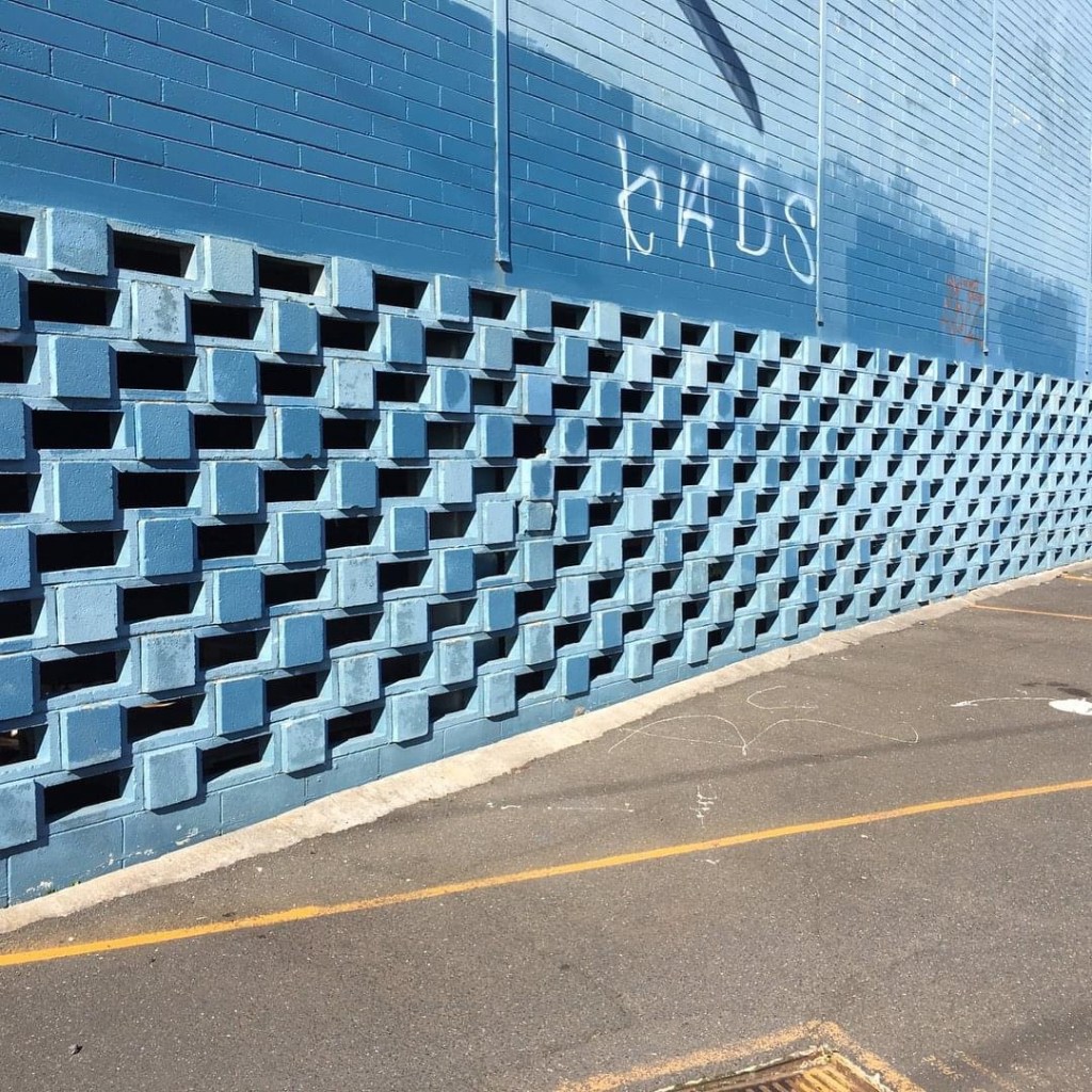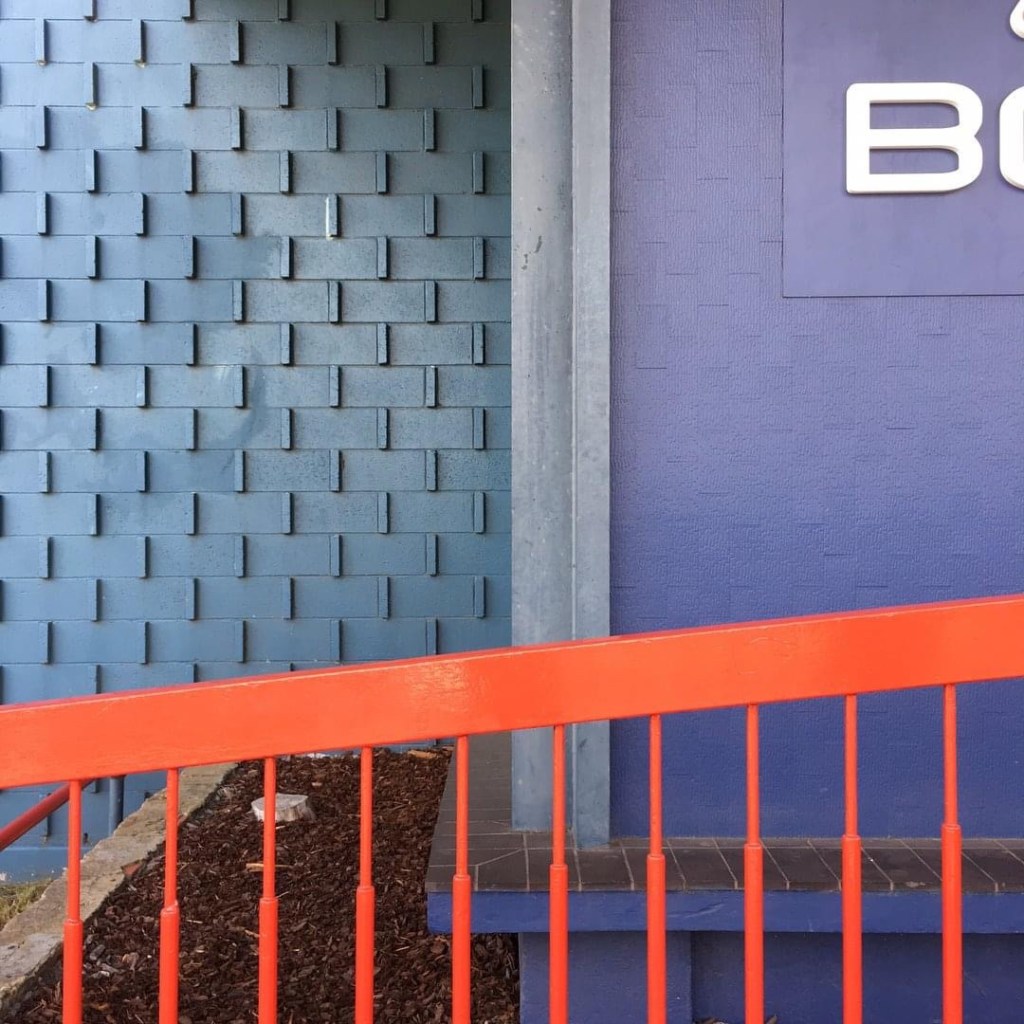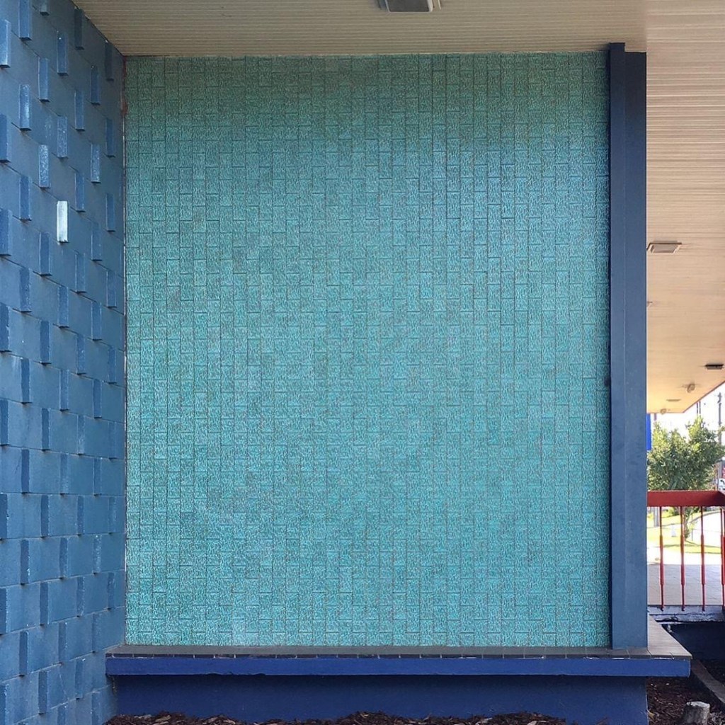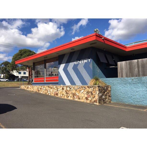 The #MoorabbinBowl #TenPinBowling, the best example left in Victoria of the first wave of these being built, and the only one with a heritage listing (though not before it was all painted blue). Architect #TheodoreBerman, built 1962. Sharp #modernist edges, but a great variety of materials and textures, mostly now under blue paint. But really, pretty intact. Less interesting inside I think, but didn’t get in. The similar but more intact Mentone Bowl was demolished in the 90s, but this one got listed by @kingstoncouncil, though not the interior.