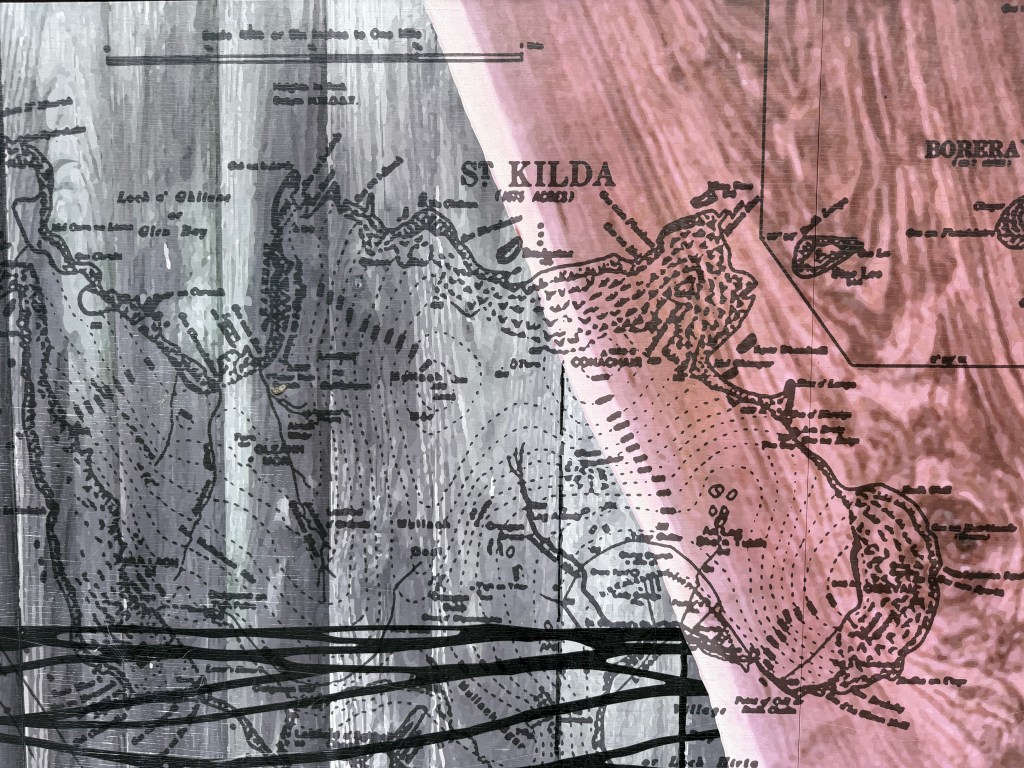 Postmodern reference, but rather literal – this new block of #StKildaFlats has an actual map of #StKilda on it; but not our place, instead it’s the Scottish islands from which the name comes (there is no actual saint, nobody knows how the westernmost #outerhebrides ended up with that name). I thought it was just just some kind of hoarding till I looked closely. #TheMarcApartments by #BruceHenderson on Princes Street #StKilda, 2017. It’s a sort of fence for a ground level apartment- of the sort I think shouldn’t be allowed, given the rushing traffic and the way the fence blocks what little light would get in the main windows.
