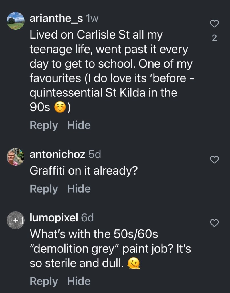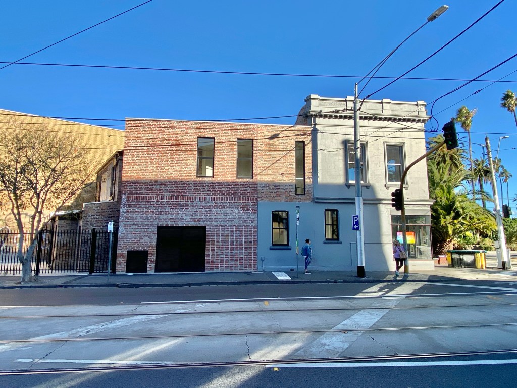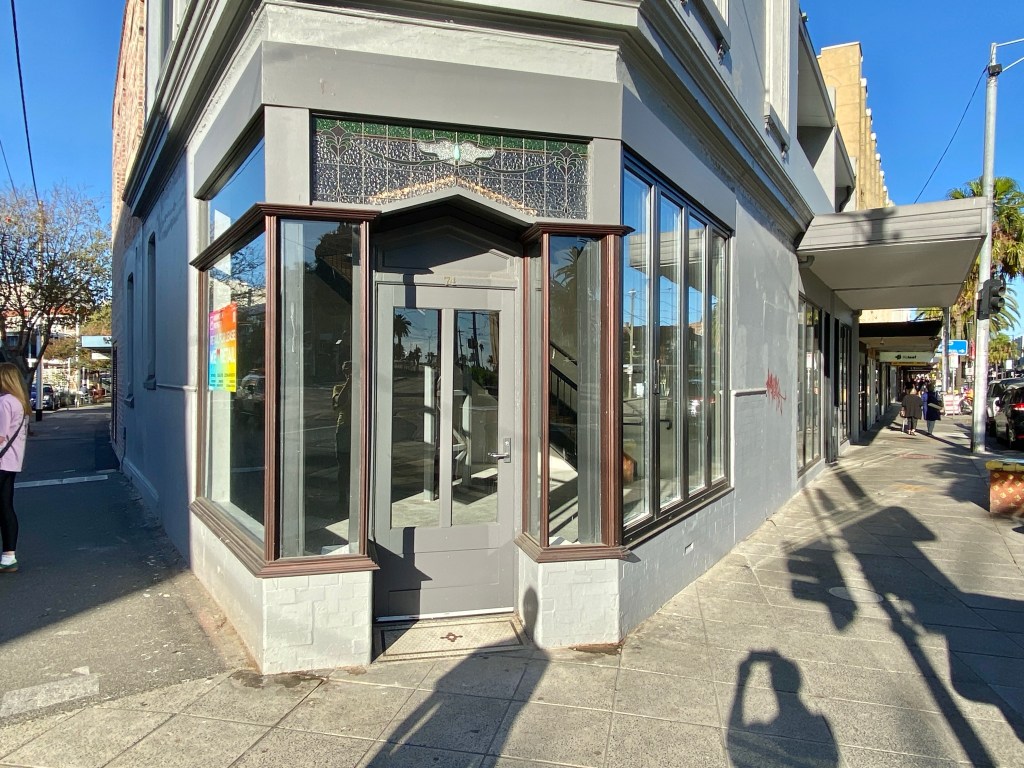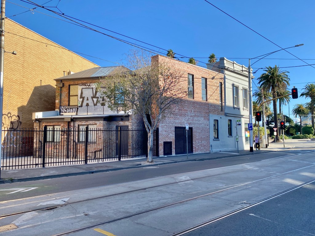 The ex-Club X on Acland Street has been revamped and partly restored – the probably 1920s corner door in particular looks good. Pity it’s all painted dull grey on grey, but at least the door frame is the original copper, burnished. The rear which was visible due to the corner site was a complex collection of bits, mostly still there, but the cute little verandah was replaced rather oddly by a wedge shaped extension, though nice they used second hand bricks. There’s two more shops on the Acland Street side, clearly lost all their detail ages ago, and have stayed that way.
