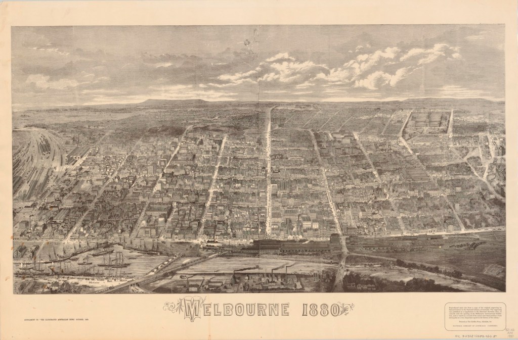 Melbourne birds eye view 1880 – as it was and as it might have been.