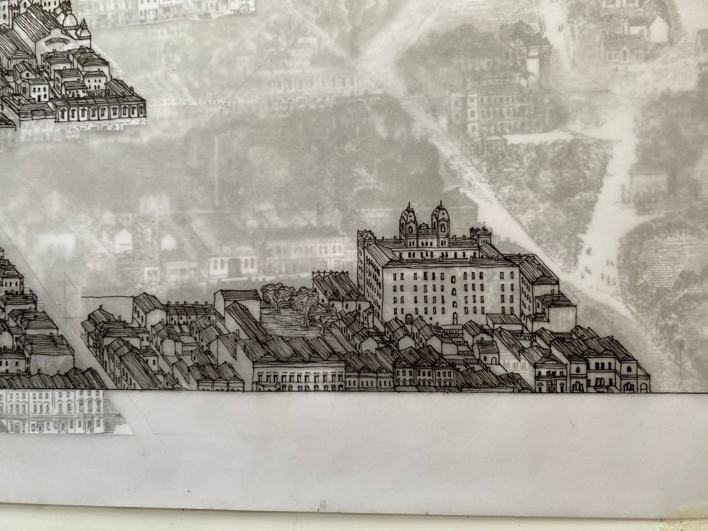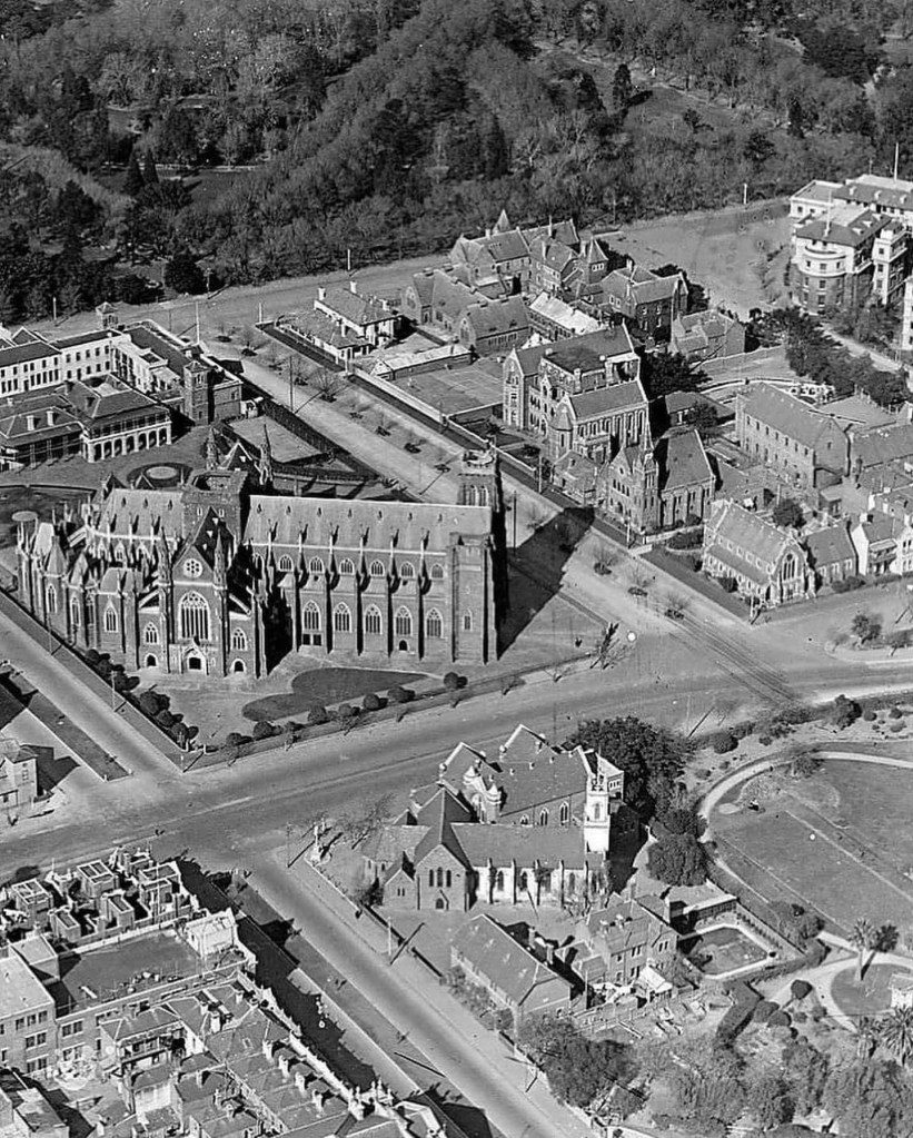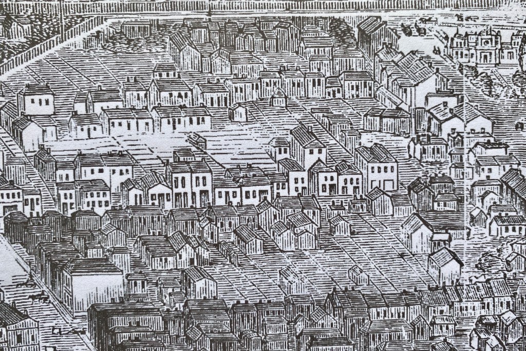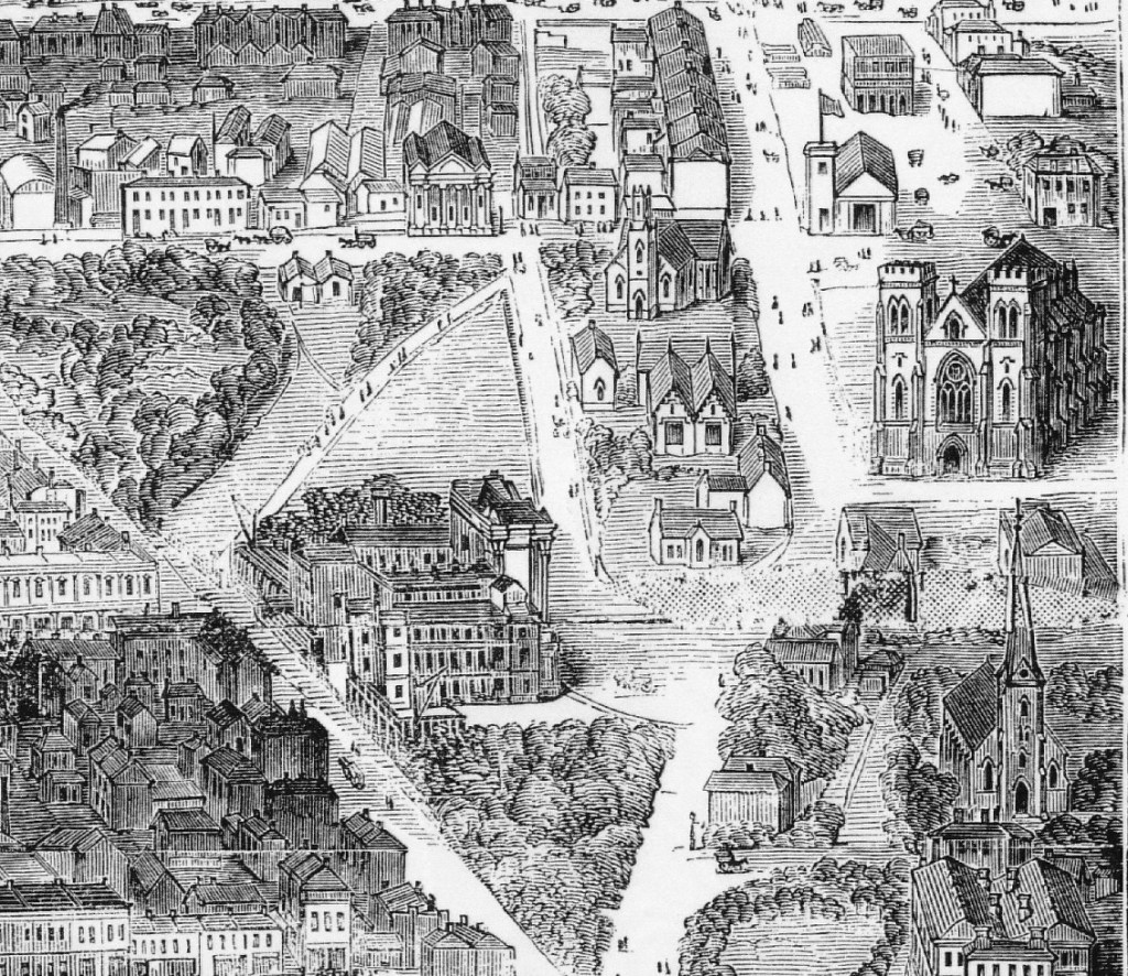 I had this print above my desk when I was a teenager – I guess mum got it for me, and where my heritage interest started ! It’s by Samuel Calvert, β€˜a birds eye view’, but i think entirely done from the ground, not a balloon. You can download a very large version from the @library_vic, and blow it up – I’ve shown some details of the Exhibition Building, Parliament House without its front, St Patricks without its spires, and the grand Eastern Market. You can see join marks and gaps, and just how wonky it is in parts eg Latrobe Street almost not there, and Victoria Parade looks parallel to Bourke Street. Lots of cute tiny horse and carts. I’m thinking of doing a version of that end but based on my plan of what Hoddle should have done, and Parliament House with it’s dome finished – do you think that would be worth it ?