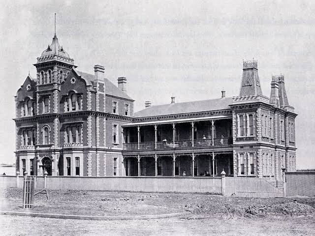 I’ve got one last triangle of land – behind the model school facing the Carlton gardens – and I’ve decided to put the homeopathic hospital there – it was actually built on st kilda road in 1885, a rather mad eclectic combo of Queen Anne gables, cast iron verandahs and spiky mansarded towers by Crouch & Wilson. It was built in stages, and then from the 1930s replaced in grand modern style as Prince Henry’s, sadly blown up in 1994. Anyway, I’m drawing it from behind, and making the end towers taller …