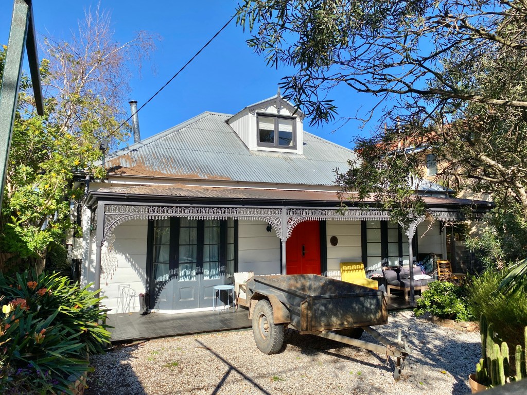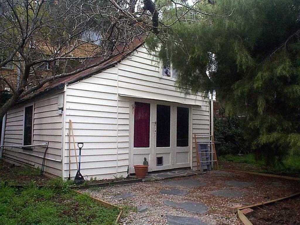 Fenagh Cottage in Burnett Street St Kilda is a prefabricated timber house from c1857, a surprising survivor. I’m pretty sure it used to be obscured by a lush garden, but it’s quite visible now. It was built either by the lot owner William Cleary, or the man who leased it in 1857, George Watson, who bought it the next year, and the lots either side. Watson ran mail coaches, bred race horses, and started the Melbourne Hunt Club, but stayed in the modest house on the St Kilda hill until he died in 1906, and his family stayed into the 1920s. The verandah and the bay windows are later additions, and I think everything past the front four rooms too, all likely done in the 19th century (real estate plan and interior pics from 2005), but the 1857 stables are still there. The plan is from 1897, from the St Kilda Historical Society entry.
