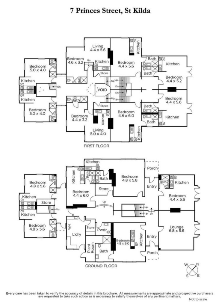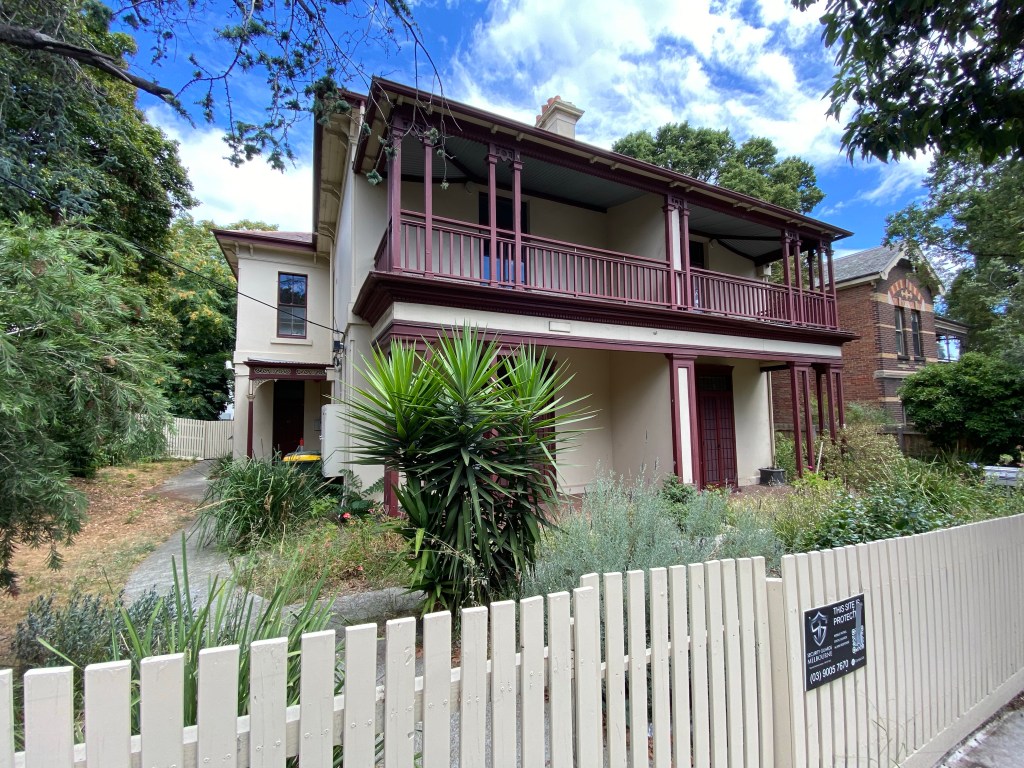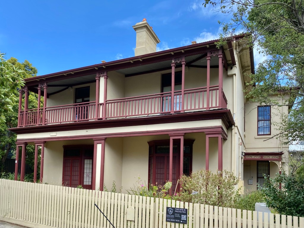Another grand terrace pair in St Kilda, this one on Princes Street, judging from the simple details and timber verandah, perhaps 1860s or 70s. Until late last year it was a rooming house of mainly large bedsitters operated by Launch Housing. They stated that they’d use the funds for better quality housing, and re-housed everyone, some had been there many years. They only got $3.7 mill, which is the price for a single large terrace in this area. Still appears to be empty.