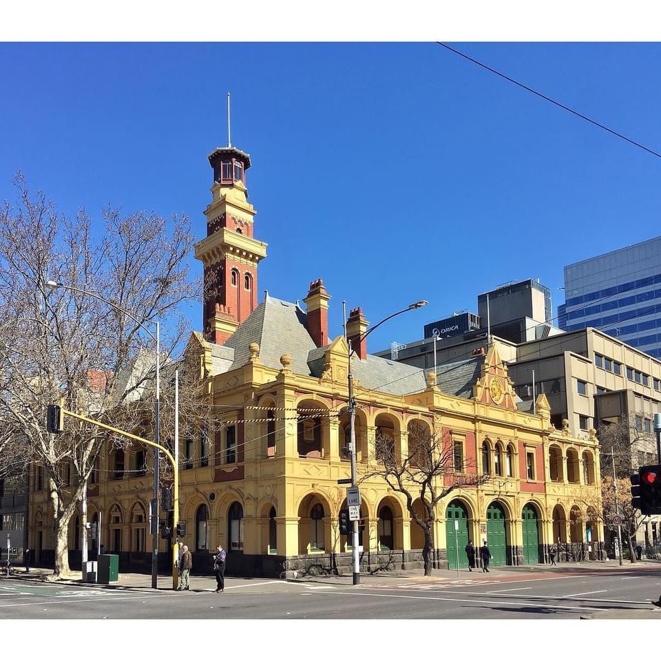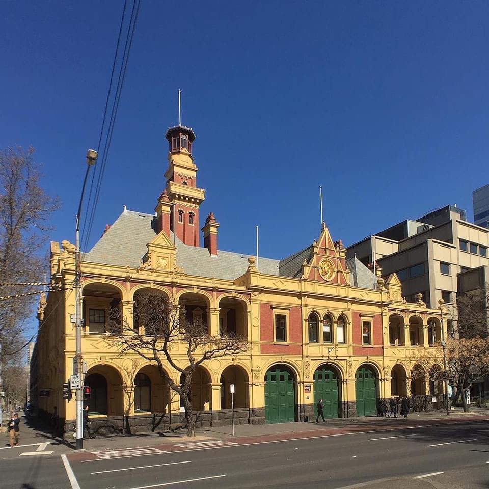 The #MetropolitanFireBrigade HQ or at least main station, #EasternHill, built 1893, designed by#TaylerandFitts, and #SmithandJohnston, who had to combine their equal prize winning designs (somehow). The MFB was only formed in 1891, after years of part funded volunteer and insurance brigades and lots of fires. Great #firespotting tower, and nice #QueenAnne styling, all restored about 15 years ago, the #goldleaf highlights still glowing (maybe it was done agin recently ?). The old part is now their museum, but there’s an attached brutalist early 70s section even bigger that is an operating #firestation. @ Fire Services Museum of Victoria