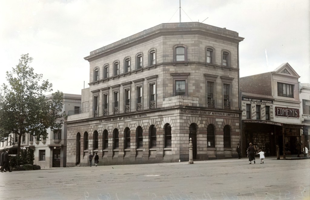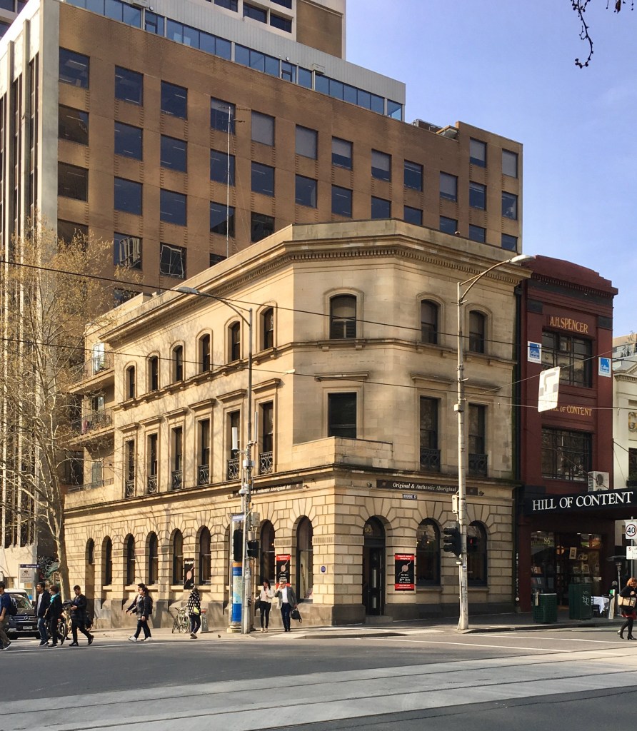 The London Chartered Bank, architect Leonard Terry, 1871, a nice stone-built survivor on this prominent #BourkeStreet corner, probably because it stayed a bank until 1990. (Later #ESandAbank then ANZ). Plus it’s very nice. Pics 2 is 1929, @library_vic, and then a pic from the 1870s from @statelibrarynsw, showing that the ground floor corner was also chamfered originally, which was better actually.