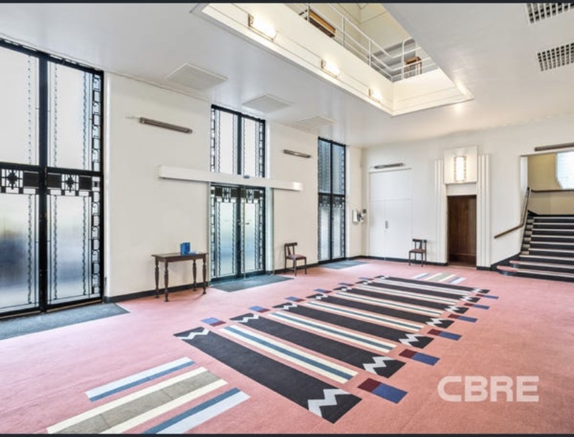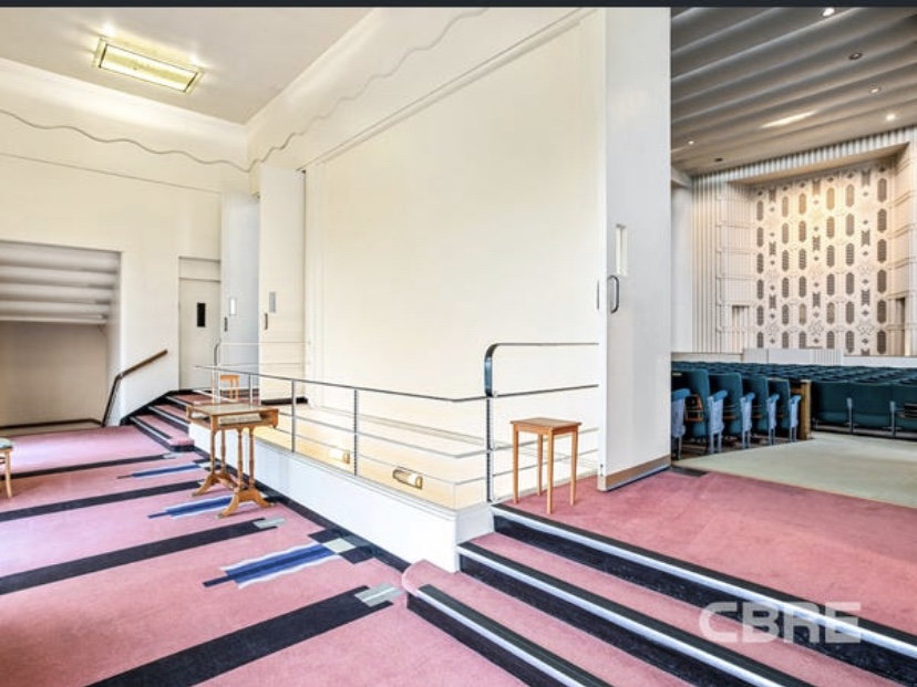 This is the inside of the very fabulous 2nd Church of Christ Science, in Cookson Street Camberwell, just near the station. It was built in 1936, designed by Bates Smart McCutcheon, and is one of the very few Art Deco churches in Victoria (albeit not a traditional church). Lots of great details in the ironwork and the plaster (I’m not sure the carpets are original but they’re great too). The best bit is the geometric plaster screen behind the podium, with an organ behind it. These photos of the interior are available because it’s up for sale, I guess the Scientists are moving on. Hard to know what it could become next but it has a lot of space, with a lower hall and the main hall upstairs. A function venue ? It’s on the heritage register so it’s pretty safe.