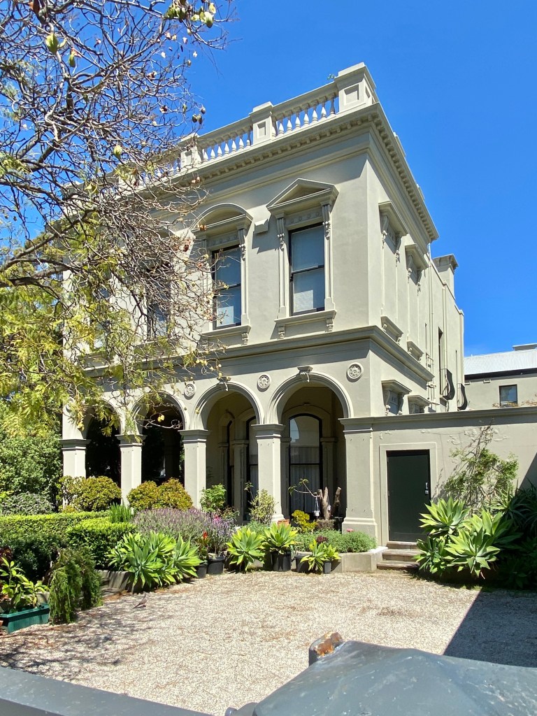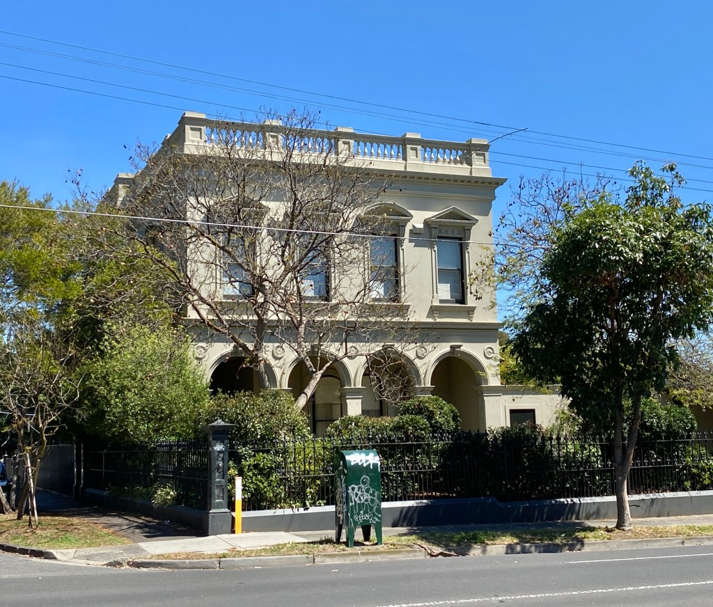 This delightful house called ‘Fleurs’ on the #StKildaHill on Princes Street was built c1882 for retired lawyer John Barker. Which is pretty much all the Port Phillip Heritage Review says; though I can add he was superintendent of the Mint from 1872, and also a St Kilda city councillor, and that not long after ‘eminent businessman Phipps Turnbull’ lived there, calling it Fluers, where he died aged 61 in 1890. The architect is not known. It’s unusual for having a recessed arcade, on two sides; an arcade like that is often found on terrace houses, whereas houses would have a projecting verandah – it was probably done here because it’s a big house on a relatively small block, a sort of mini mansion, and Mr Barker still wanted to have a shady verandah.