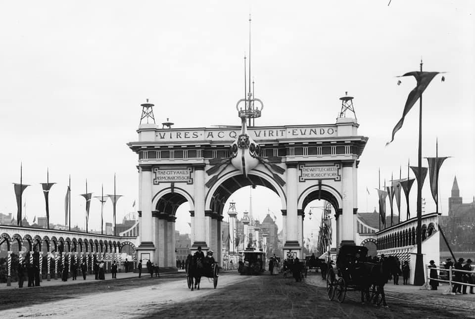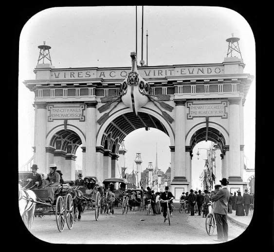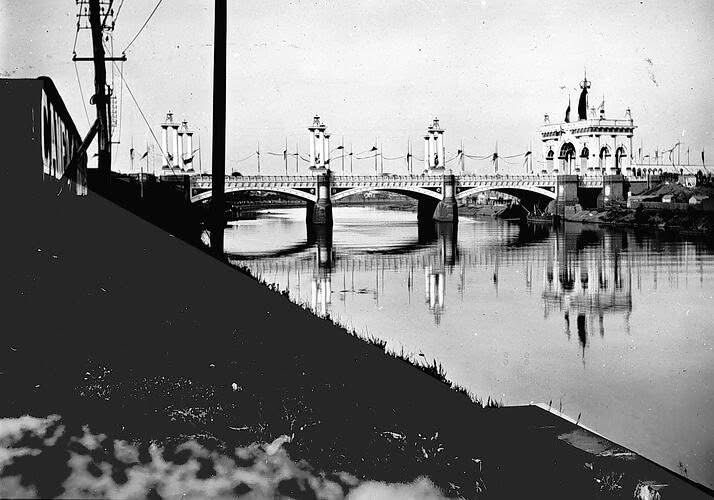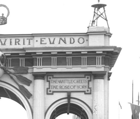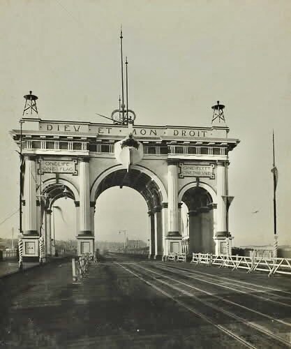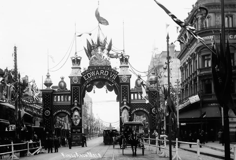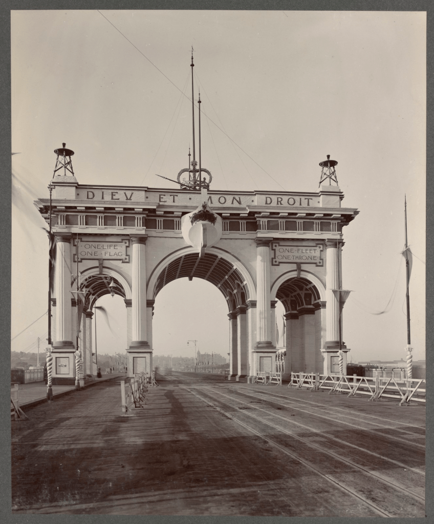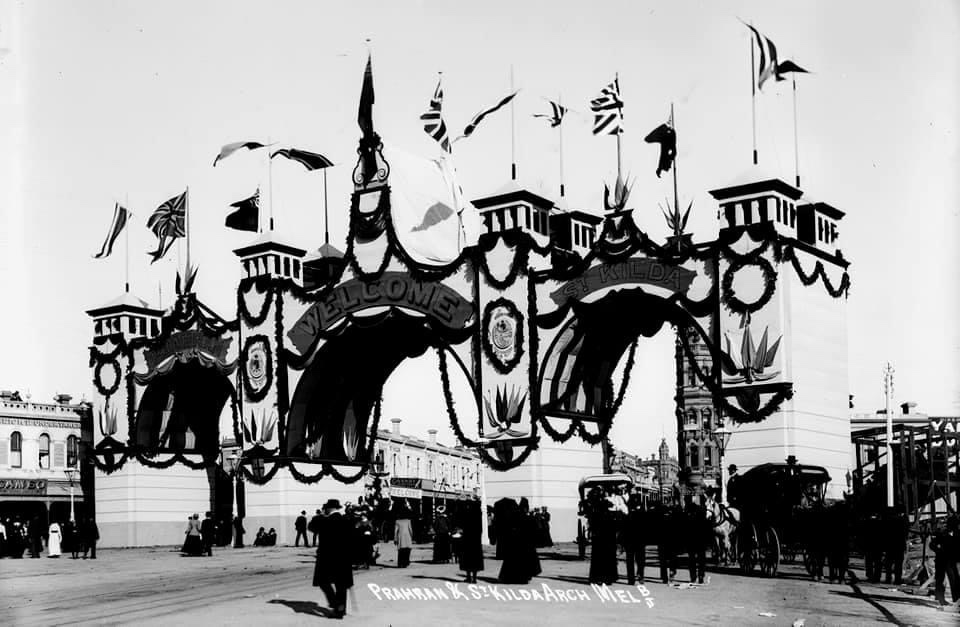 This grand triumphal arch was built over Princes Bridge in 1901 by the City of Melbourne to welcome the Duke and Duchess of York to open the first Federal Parliament.