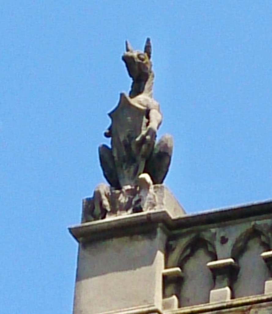 This fantastic #venetiangothic style shop building in Drummond Street Carlton is very famous for the things on top – I was once told they’re ‘kanga-griffins’, wonderfully Australian #victoriana, but then someone else said ‘no they’re just traditional #medieval #chimera’. Whatever they are they’re great, and very unusual, in fact I can’t think of anything similar. Being medieval fits the Gothic style of the rest, with those great pointed arched windows in polychrome brick. It was designed by Inskip and Robertson, and was built in 1889 for Mr Welch of Ball & Welch, who had one of the 2 shops as part of a growing grocery business, and went on to build an enormous department store in the city ten years later.