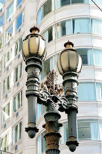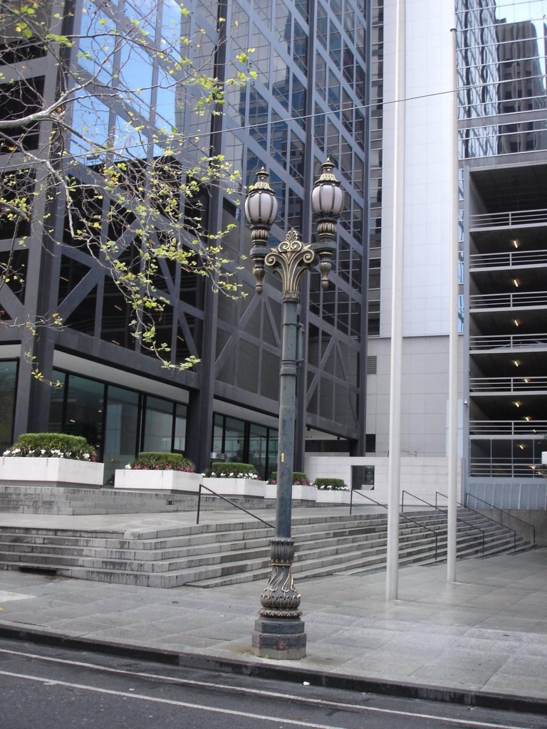 Melbourne’s history of streetlamps and a a story little told. The first were gas lamps installed from the 1857, which provided an uncertain flickering glow until the late 1890s when the city installed tall electric electric arc lamps at street corners, noted for their extreme brightness. Then in the 1920s the city decided the lamps themselves should be beautiful, starting with single examples in the Paris end of Collins Street, most still there, and along St Kilda Rd, now gone. They were soon followed by wonderful double headed ones installed on the piers of Princes Bridge in 1926- the design of these was clearly inspired by the street lamps of San Francisco and Los Angeles, also erected in the 1920s. Finally grand freestanding double headed ones were installed on most city streets in 1929.